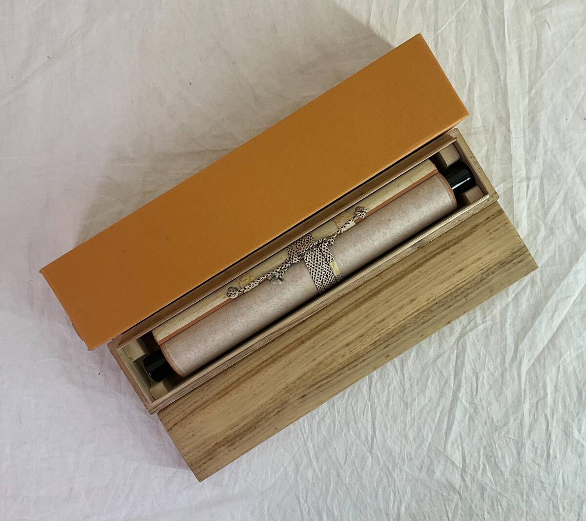古い掛け軸は軸先を固定している接着剤が弱り、輸送途中の衝撃で軸先が外れてしまう場合がございます。