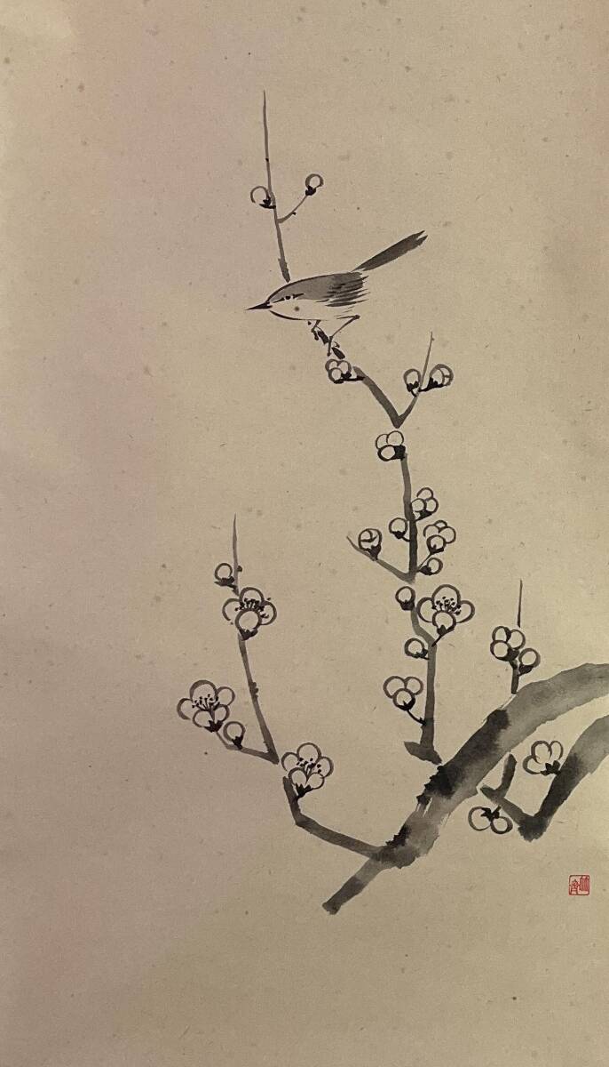 【真作】《掛軸》高橋悦道_賛 梅図 共箱 大徳寺派 明星寺 茶道具 臨済宗