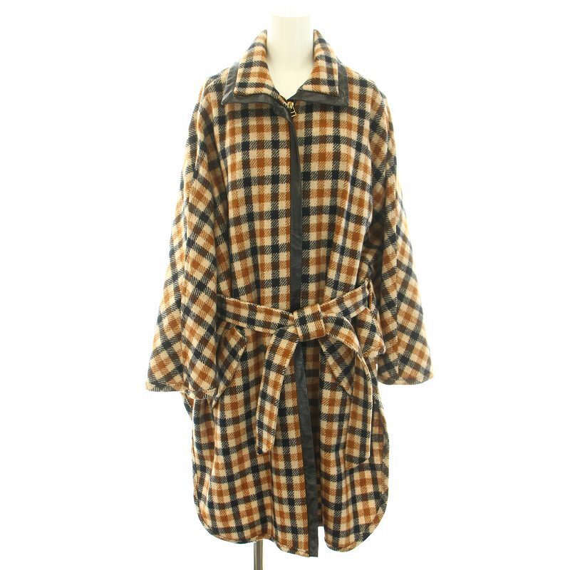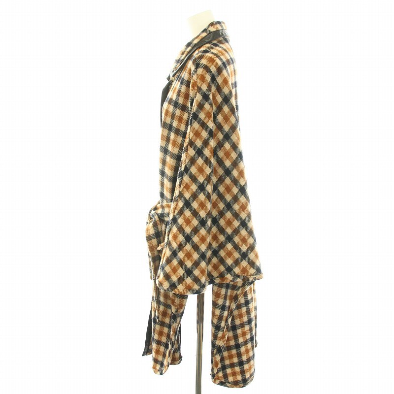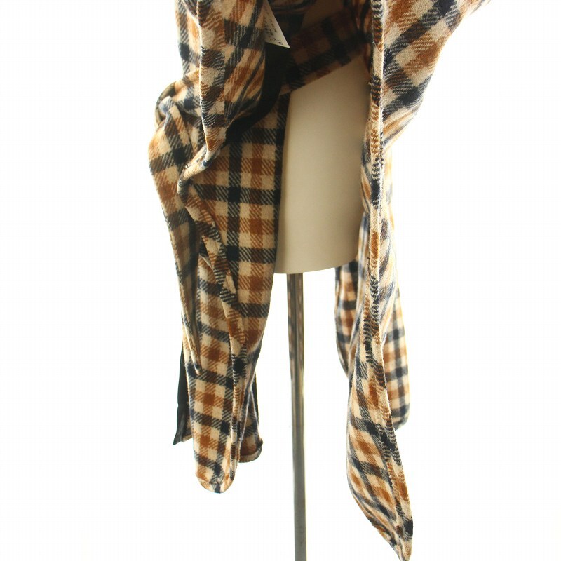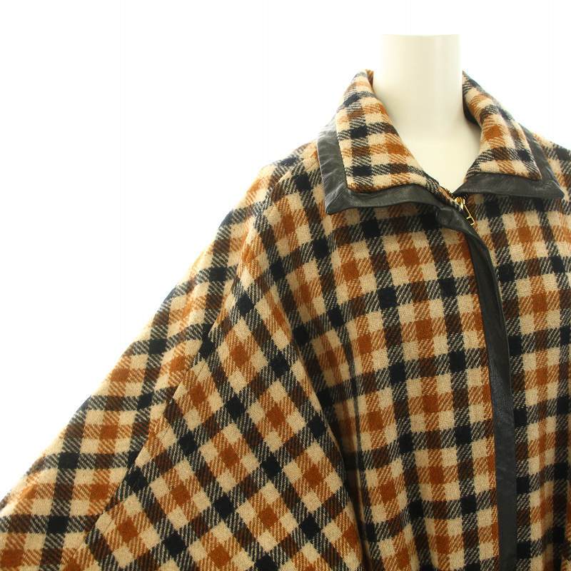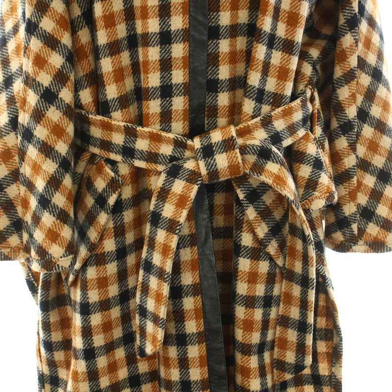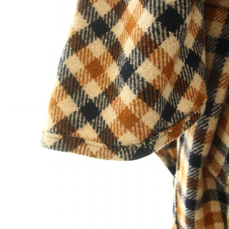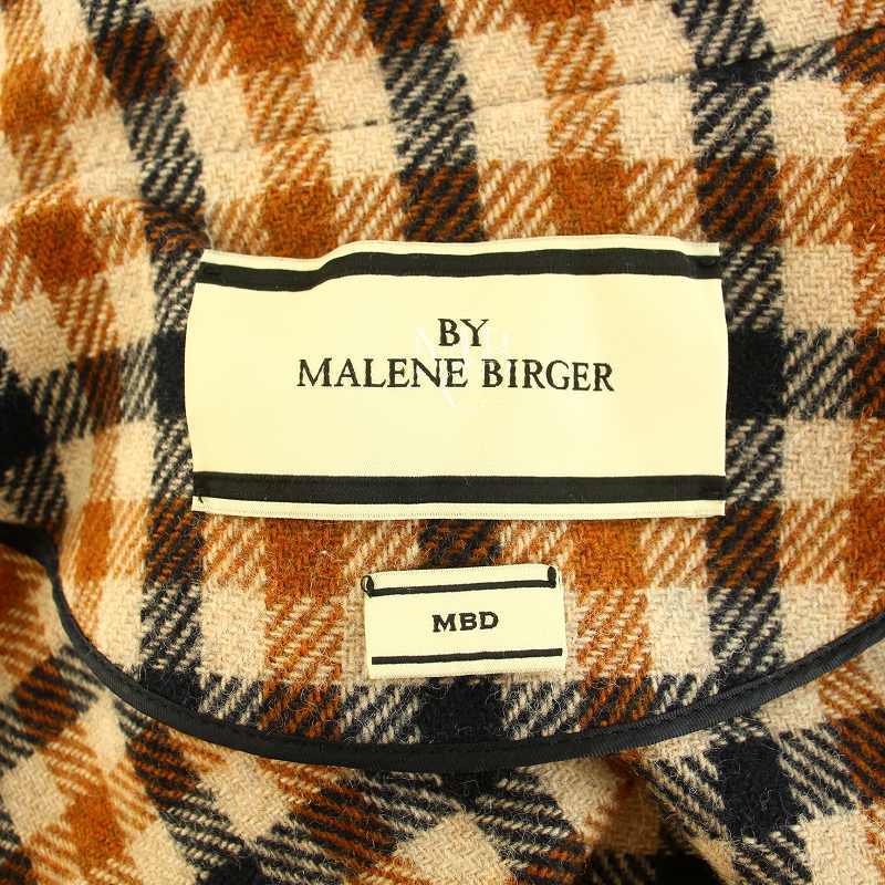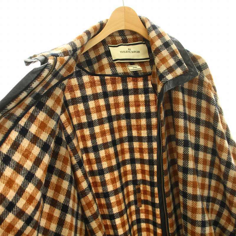 バイ マレーネ ビルガー BY MALENE BIRGER ポンチョコート アウター ミドル ギンガムチェック柄 リボンベルト ウール S 茶 黒 レディース
