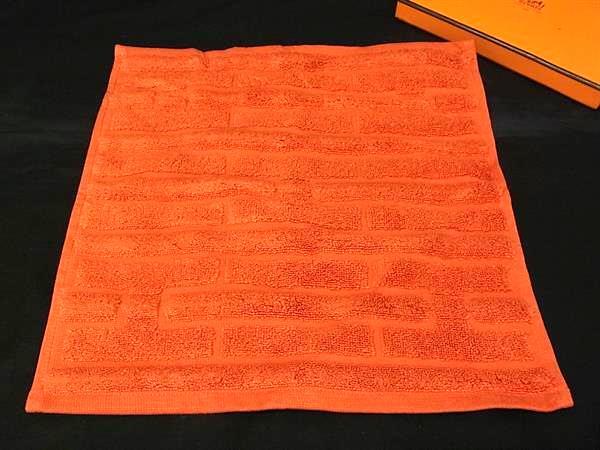 ■新品同様■ HERMES エルメス ラビリンス コットン100% フェイスタオル ハンドタオル メンズ レディース テラコッタ系 FG3171