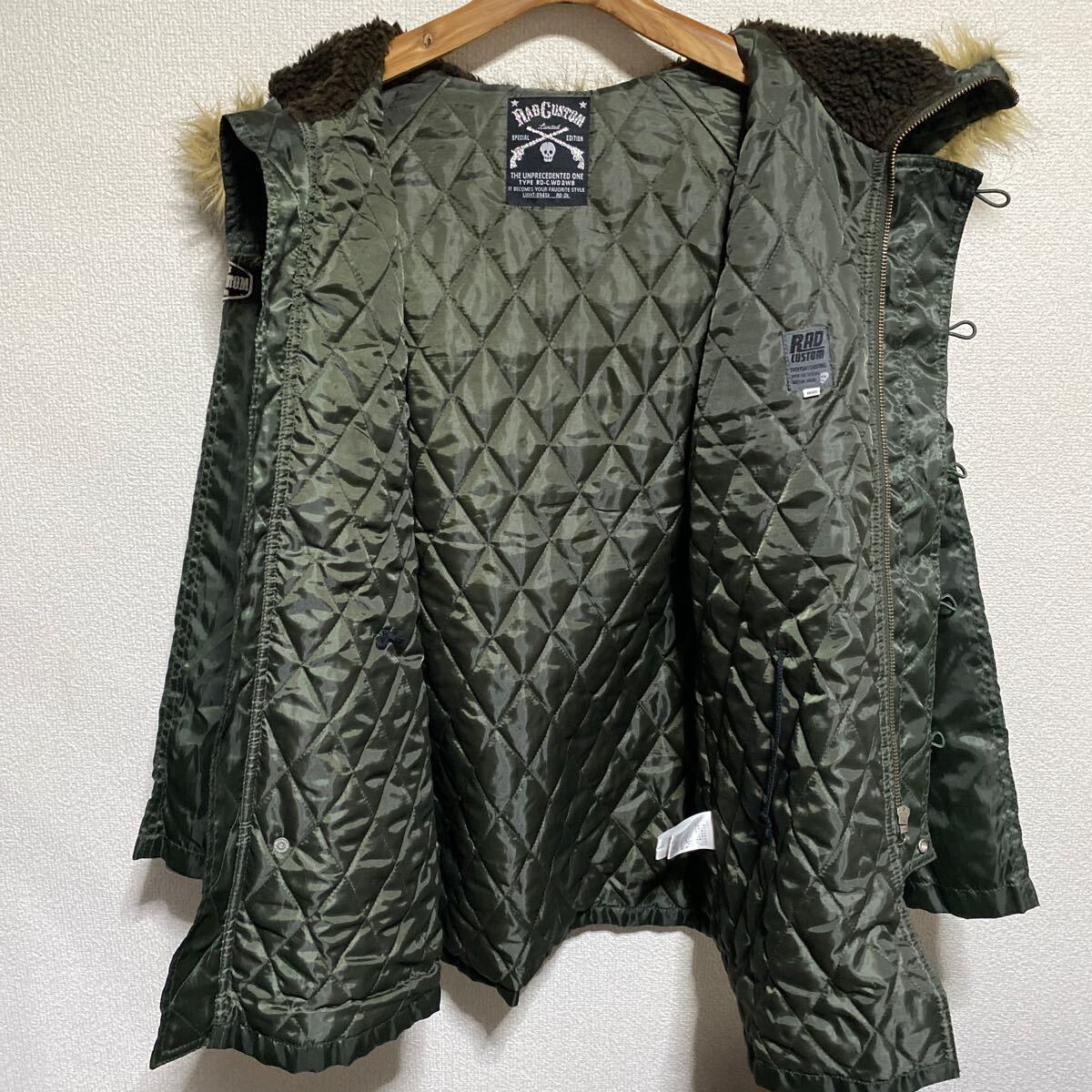 [送料無料]RAD CUSTOM/ラッドカスタム/N-3B/フライトジャケット/モッズコート/中綿/刺繍/スカル/カーキ/キッズ/子供服/160サイズ