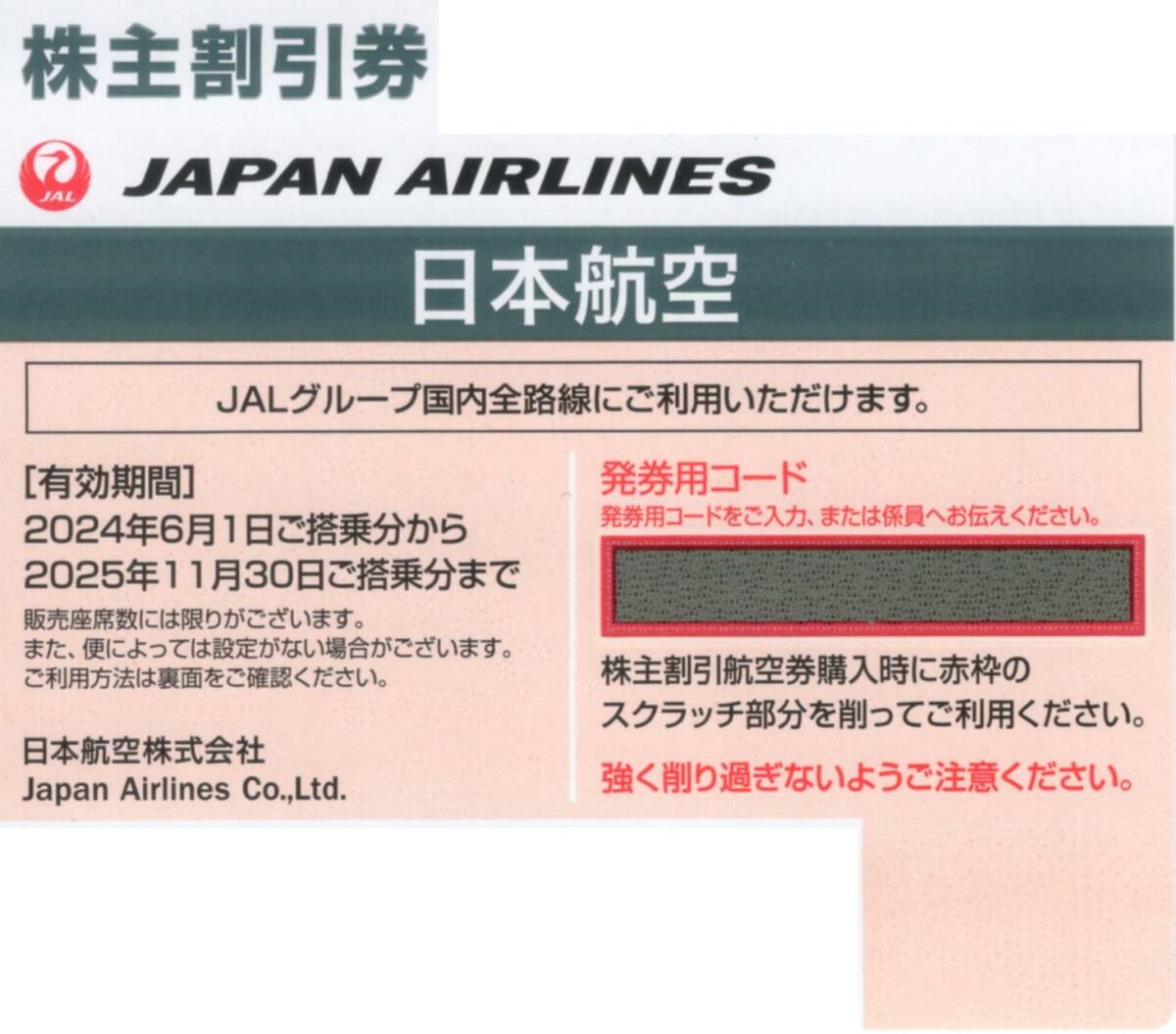 JAL日本航空 株主割引券×1枚★番号通知★日本航空株主優待