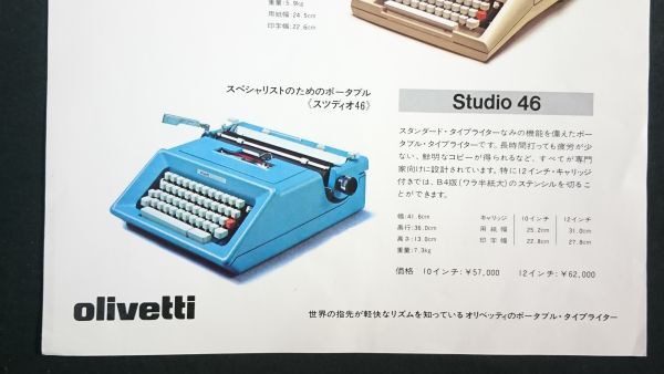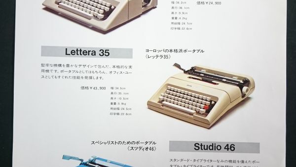 【昭和レトロ】『Olivetti(オリベッティ) ポータブル タイプライター Lettera(レッテラ) 25E/Lettera(レッテラ) 35/Studio(スタジオ) 46 カタログ』1977年頃 日本オリベッティ株式会社 | |