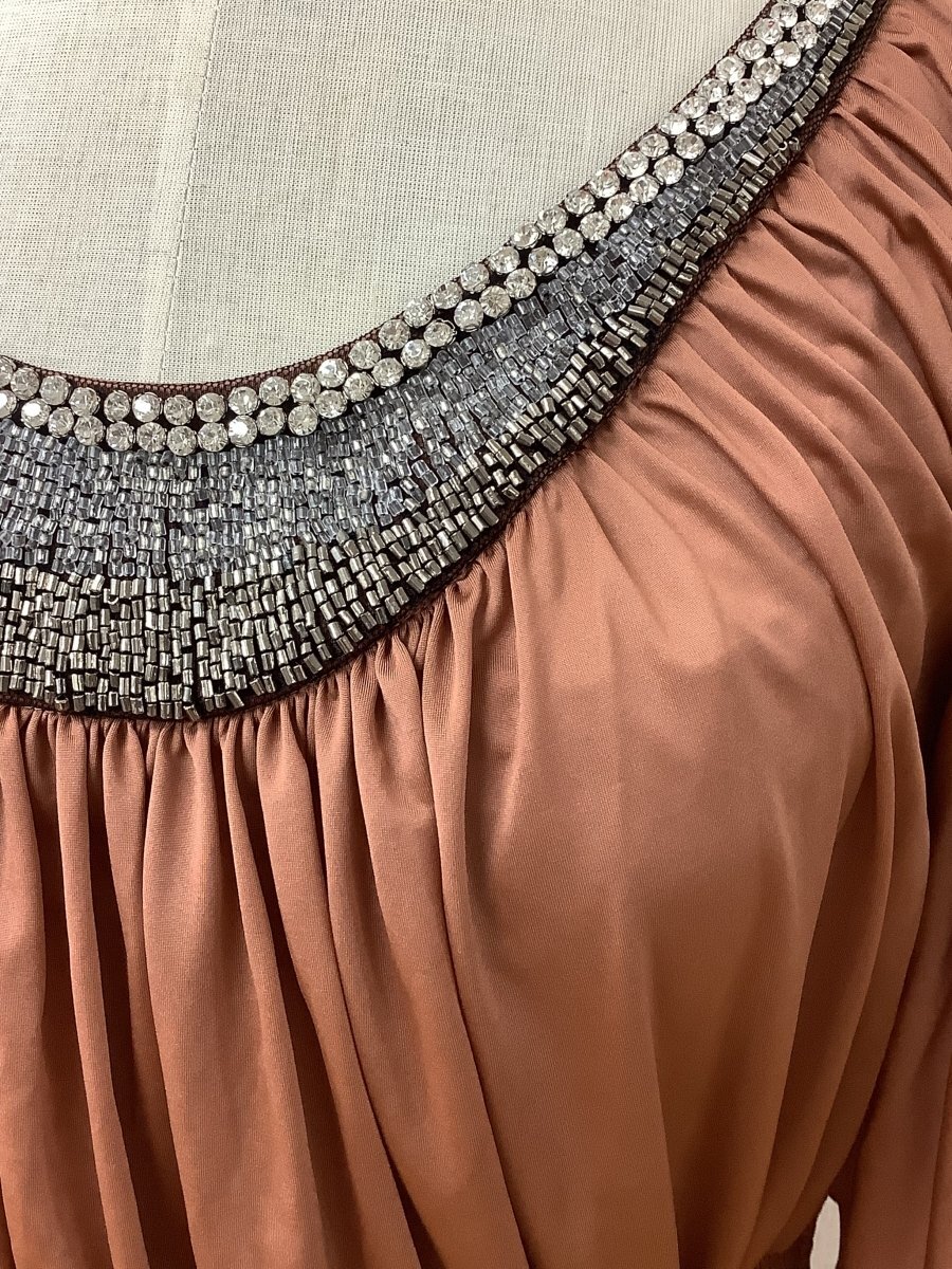 | 管理番号:10^138667 レアノーレ社 茶オレンジのとろみ生地チュニック ウエストゴム 表示サイズ:なし 実寸(参考)