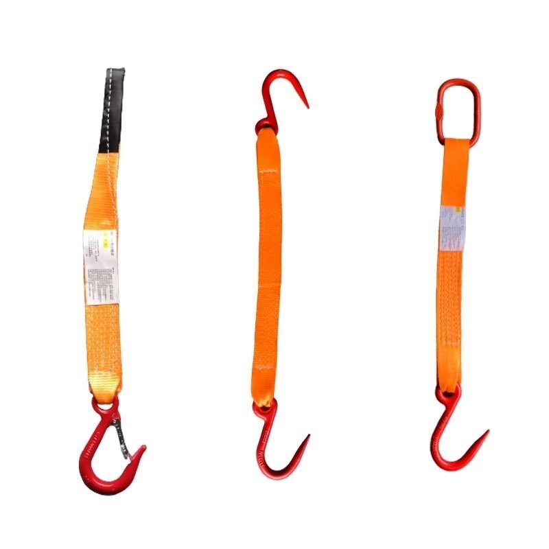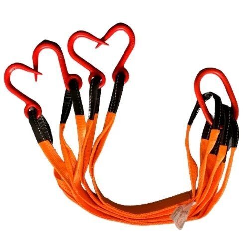 玉掛け用金具付き ベルトスリング 4点吊りスリングベルト 炭素鋼製 フック付き リング付き ポリエステル製 ベルト長さ1m耐荷重4t