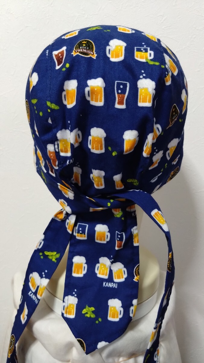 ★バンダナキャップ★ハンドメイド ビール 乾杯 紺