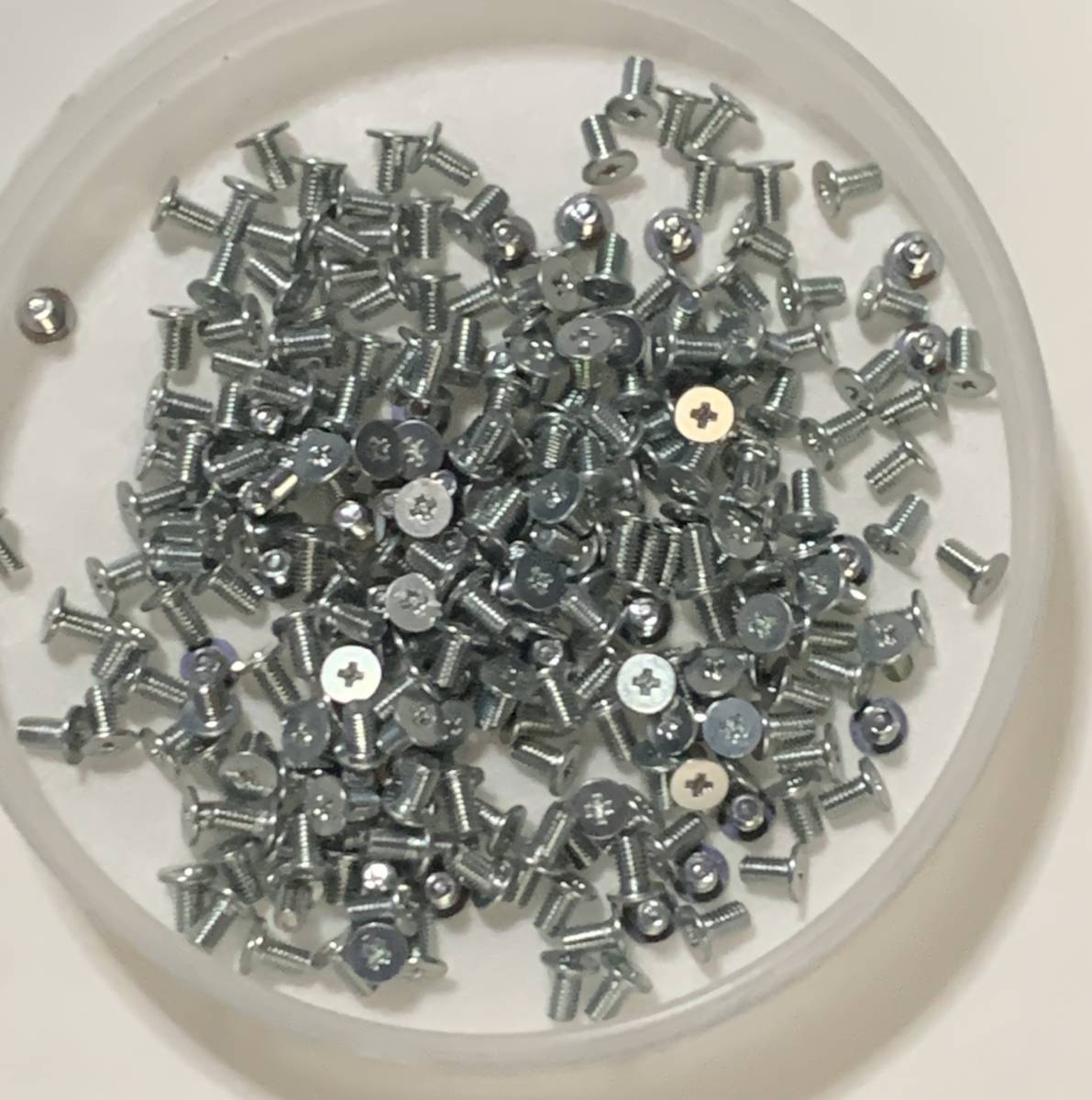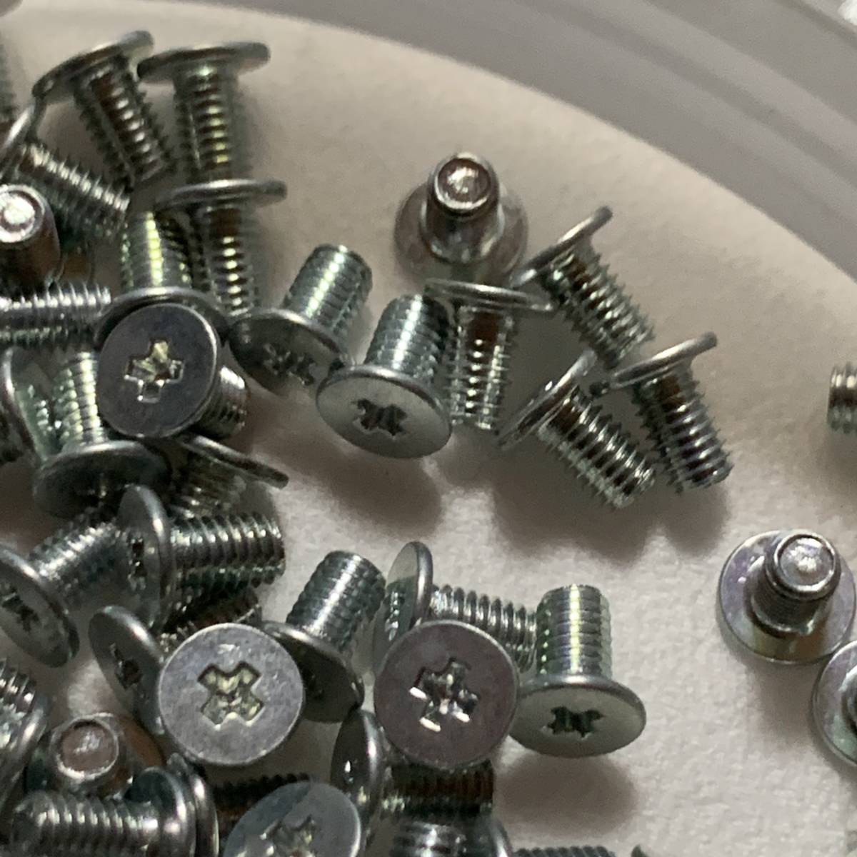 「M3×5 低頭ねじ(全ねじ)」 約77.1g入り・250個(100個の重量30.3g) ※実数で250個を少し上回る量を「250個」として表記しています。 ******** 直径(最長部):5.3-5.7mm 頭の厚み:0.6~0.8mm 長さ:5mm 三価ホワイトメッキ ※ドライバー用のプラス部分のサイズが比較的小さくM.2 SSD用ねじ用などの精密ドライバーが必要です。 |