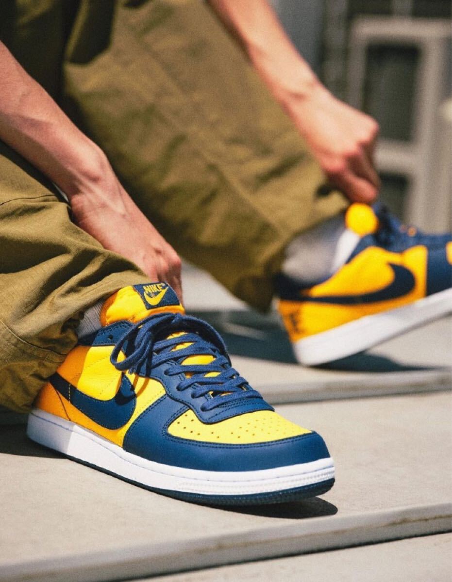 カラープログラム"BE TRUE TO YOUR SCHOOL."の一環としてリリースされたノンエアバスケットシューズ「DUNK」と同時にリリースされた、ジョージタウン大学バスケットボール部"HOYAS"のスクールシューズとして登場した「TERMINATOR」の復刻版。