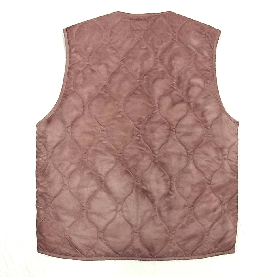 備考TIE DYE OVER VESTはナイロン素材の中綿入りキルティングベストで、縫製後の顔料吹き付け+製品洗いによってタイダイ染めのような独特のムラ感を表現した加工が特徴です。