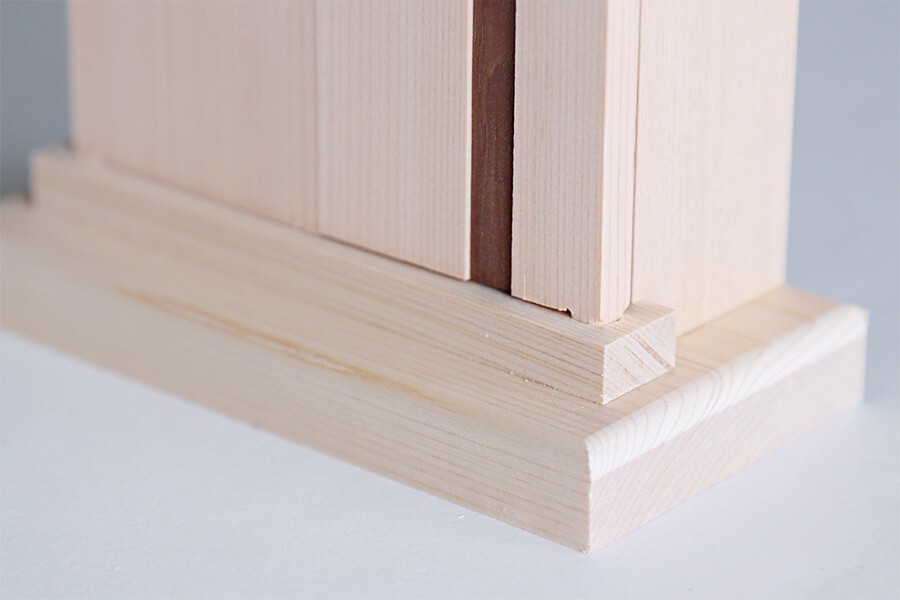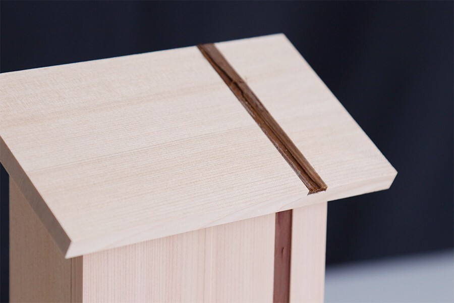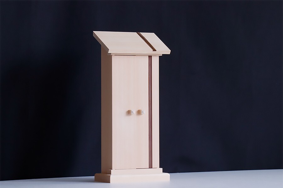 美しくシンプルなお神札入れ。モダン神棚、お神札入れタイプですが素材は最高級の木曽桧で作成されています。 緻密な木目の詰まった柾目材を扉に使用しています。大きいお神札、木のお神札もお納めできます。2枚、3枚と重ねてお祀りも可能。 木皮をライン上に埋め込んだ、職人渾身の逸品です。 省スペースでお神札をお祀りされたい方にお勧めです。 | |||