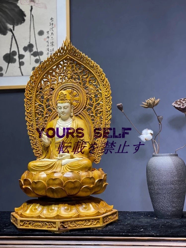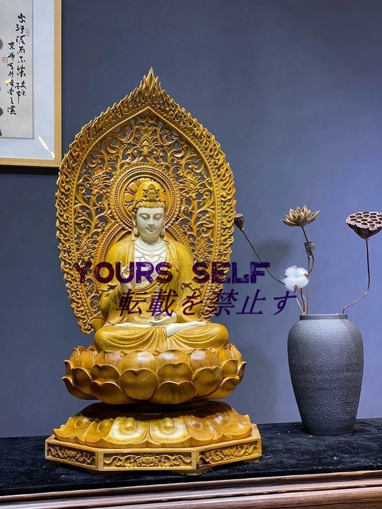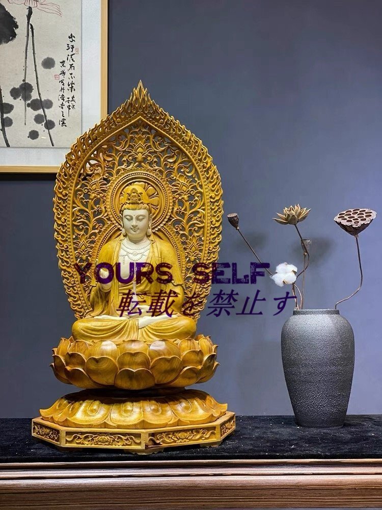 香樟木 木彫 観音菩薩 置物 坐像 木彫 仏像 仏教文化 仏教工芸品