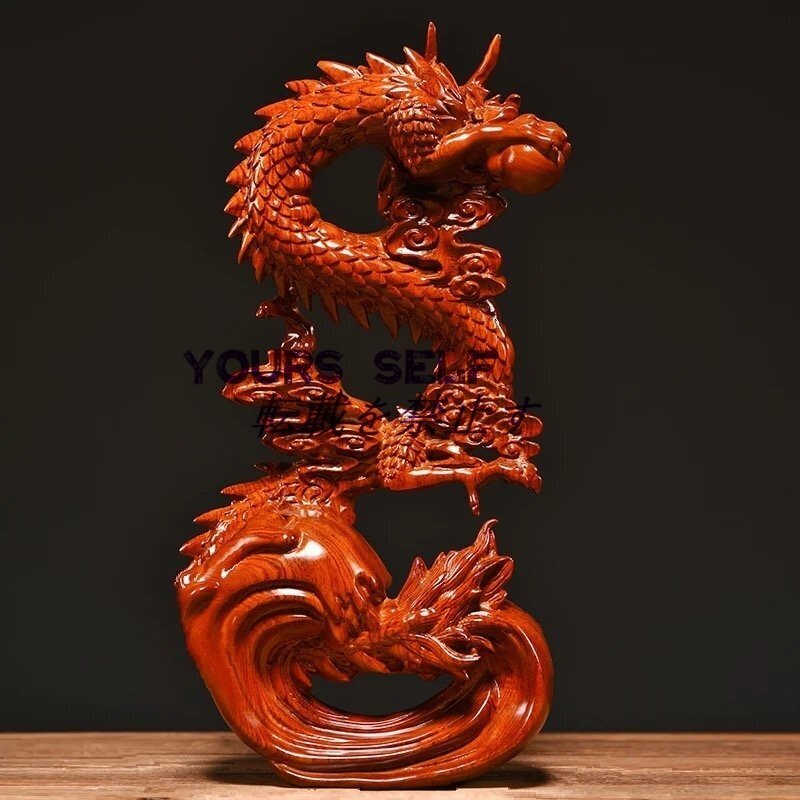 極美品★木彫り龍 昇り龍 置物 風水 龍の置物 龍神 木彫り 干支辰グッズ 金運上がる置物 (高さ20 cm)