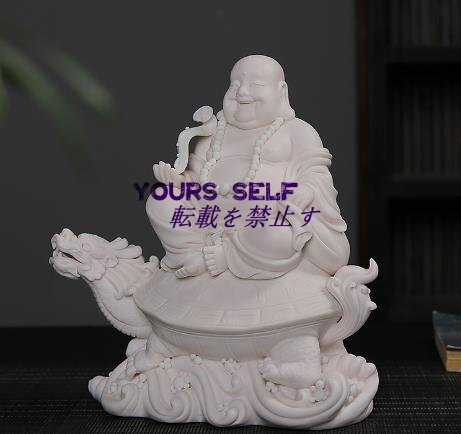 陶器製 七福神 龍亀に座っている 布袋 弥勒菩薩 仏像 金運 商売繁盛 玄関おきもの風水 グッズ 縁起物 (高さ18.5cm×巾18cm×奥行10cm)