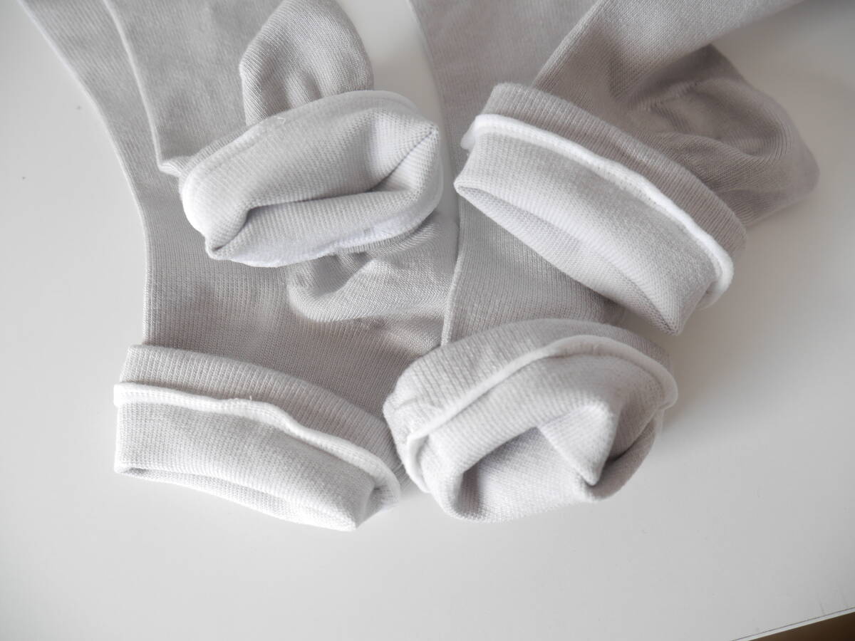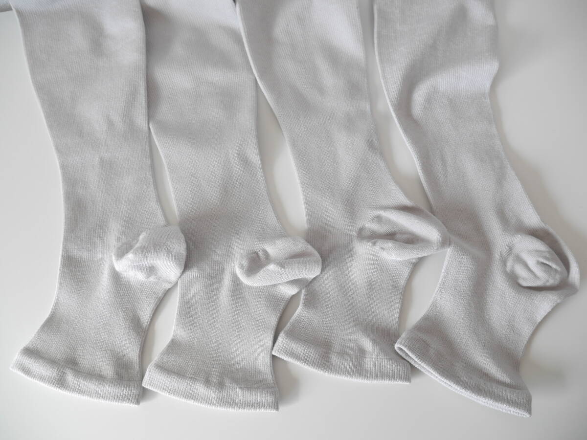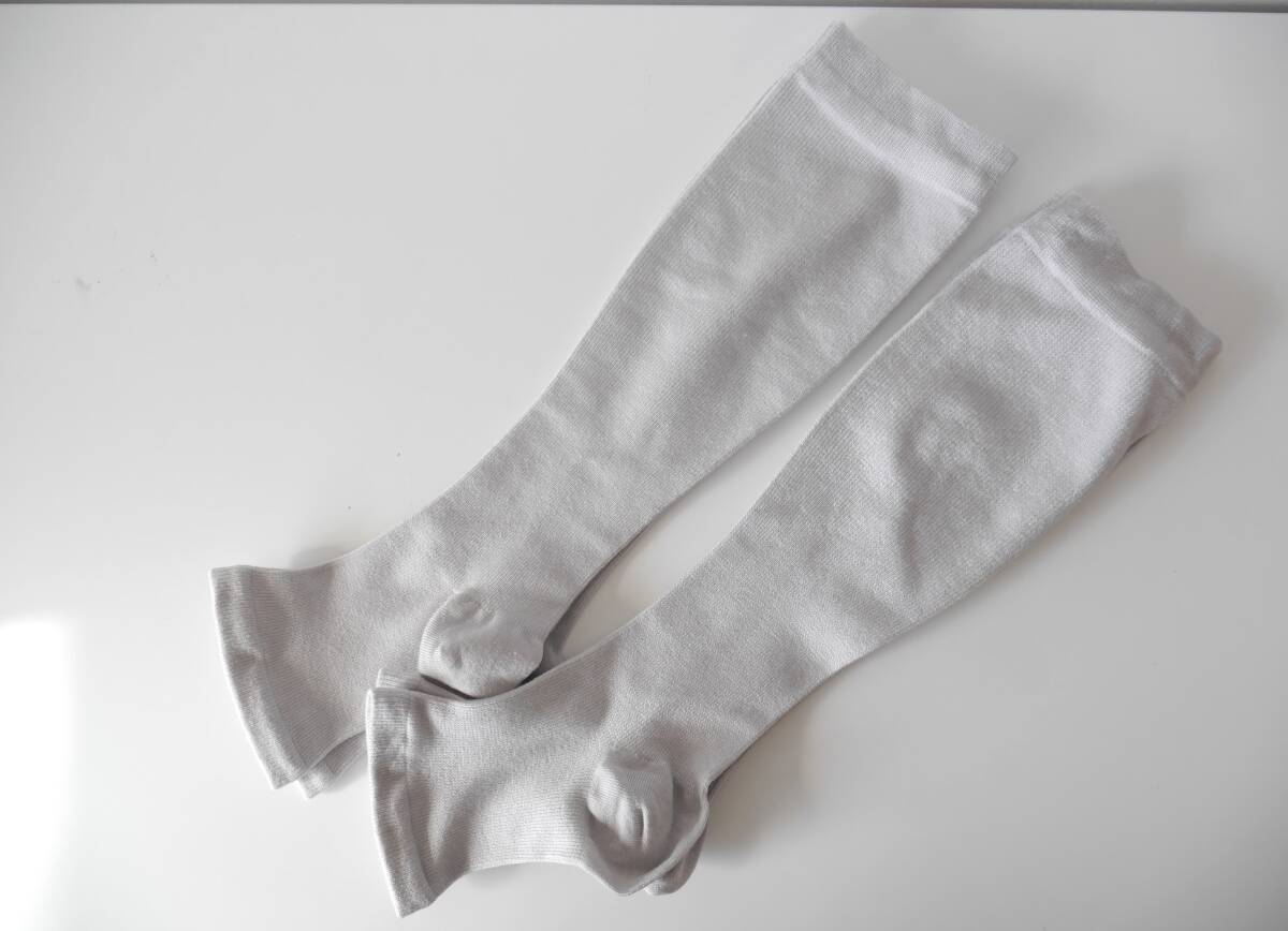 53 未着用品 着圧ソックス2足組 オープントゥ ライトグレー マタニティ シルク混 弱~中圧 おやすみ専用着圧 ハイソックス 日本製