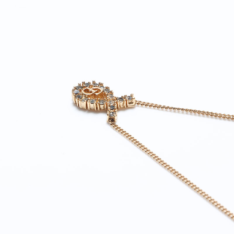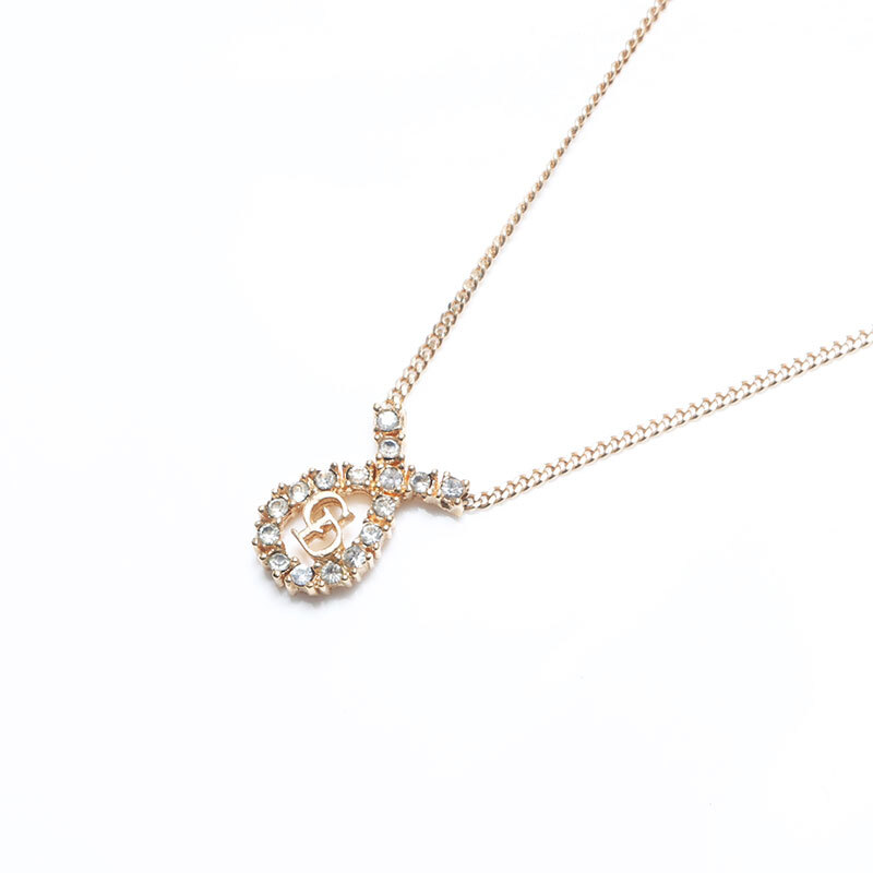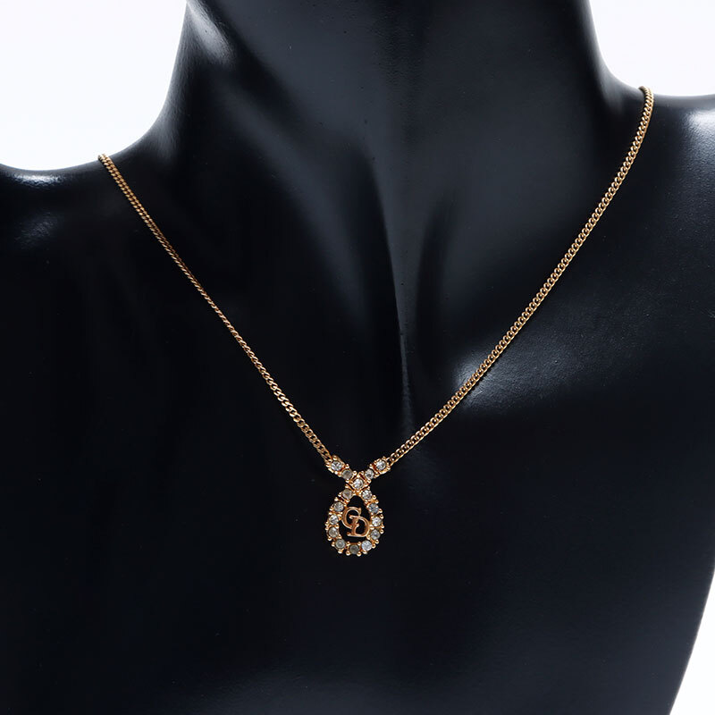 クリスチャンディオール Christian Dior ネックレス ロゴ ラインストーン ゴールド