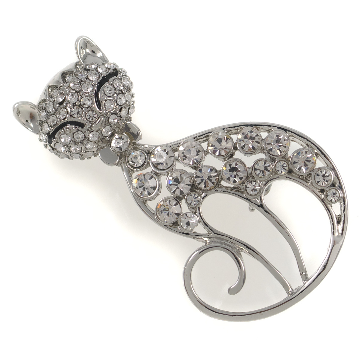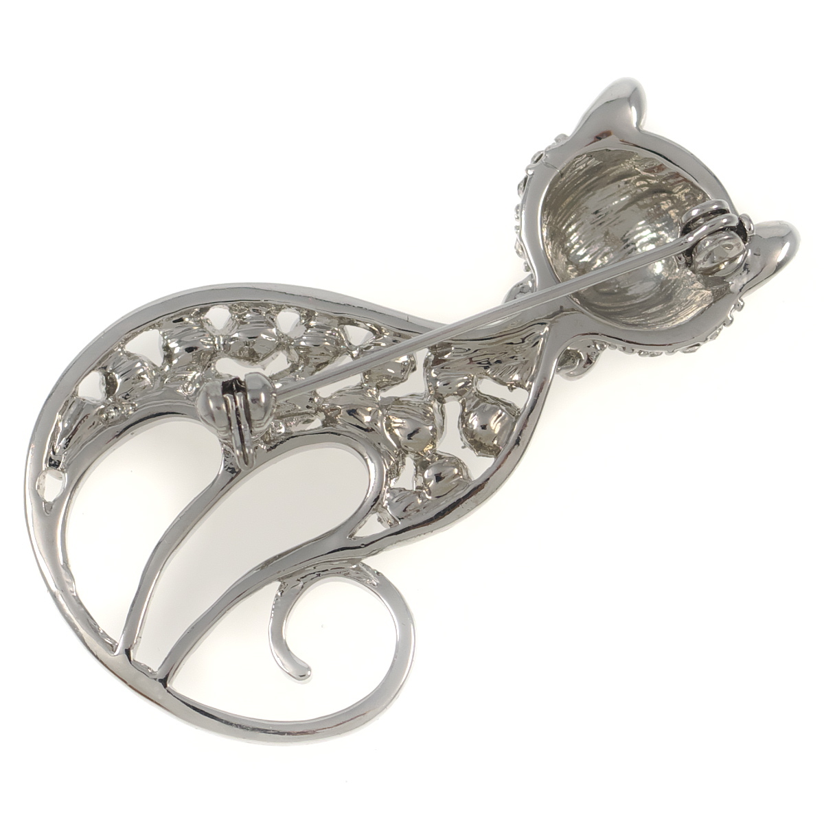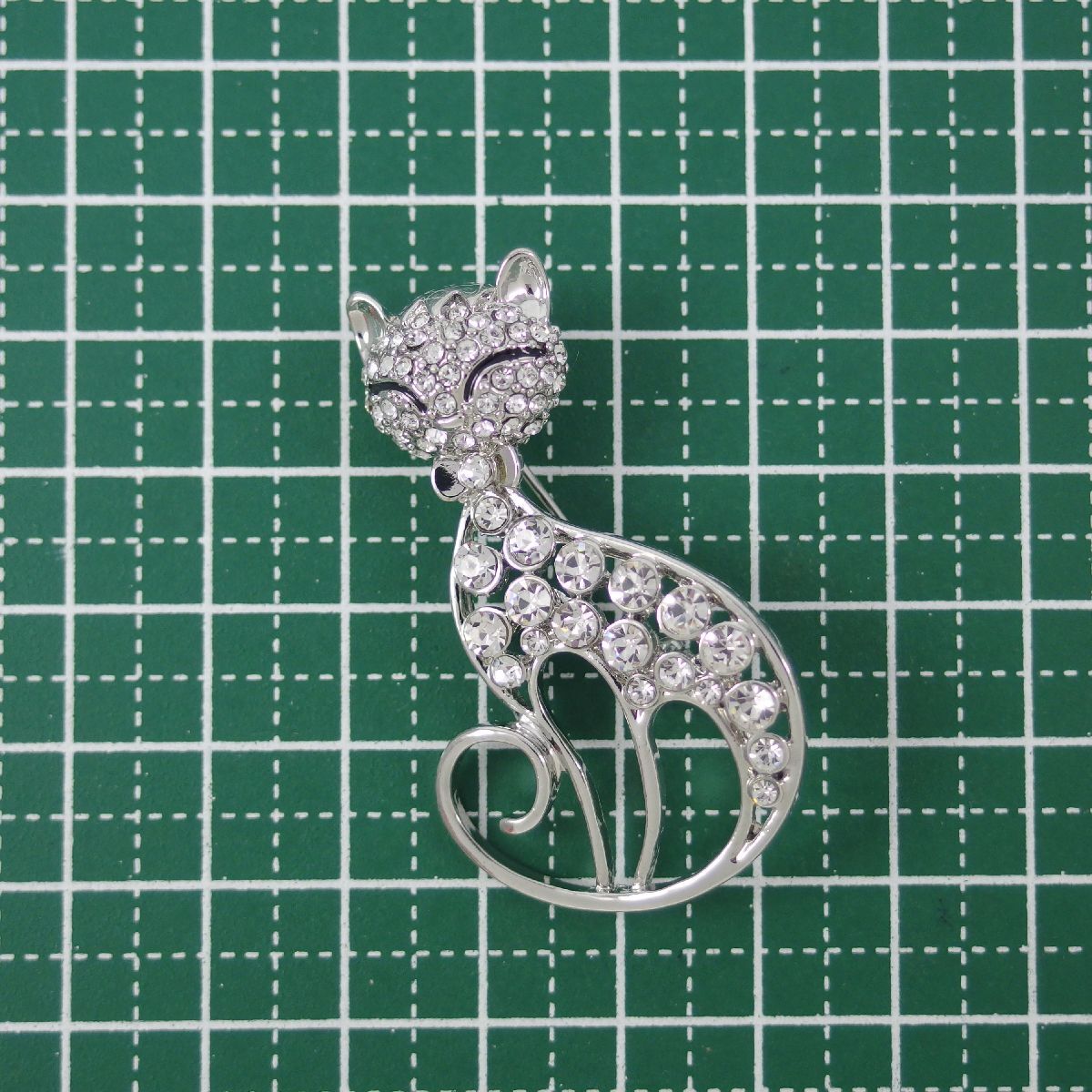 UK2962◆ キャットモチーフ 笑顔の猫 ラインストーン ◆ ヴィンテージブローチ ◆