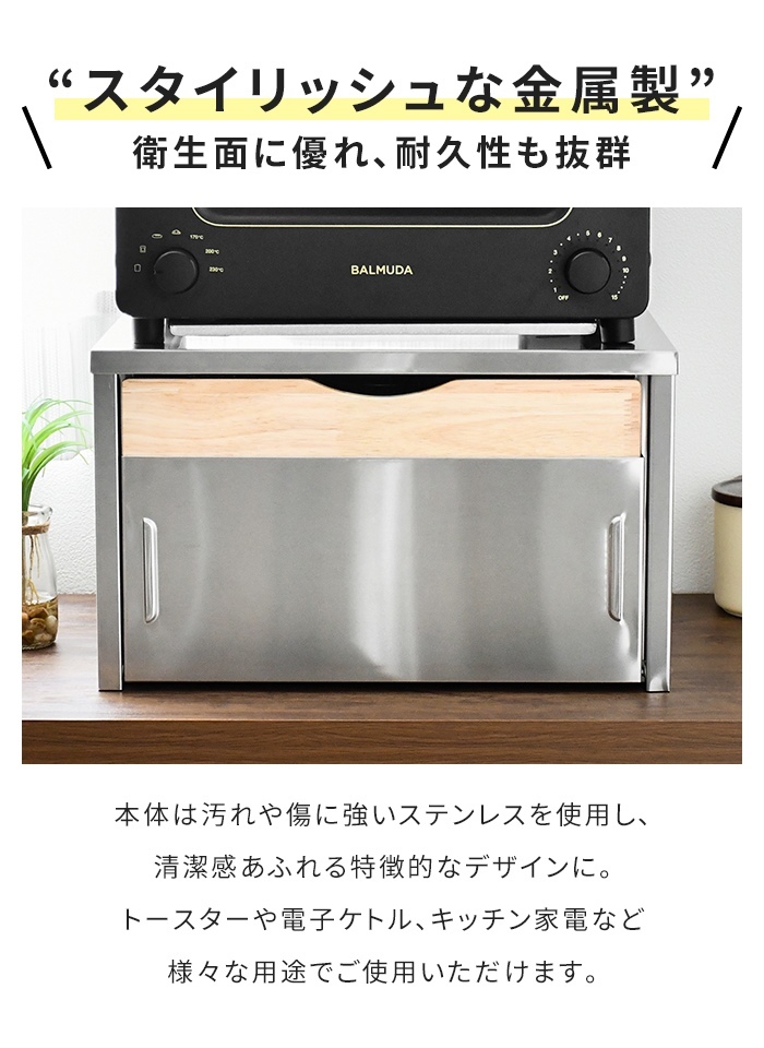 | トースターラック トレー付き 幅38 奥行35 ステンレス製 収納ケース ストッカー 調味料 保存 キッチン収納 シンク上 便利 キッチンストッカー トースター置き ステンレスラック マルチラック 調味料ラック スパイスラック ブレッドケース キッチン用品 収納用品 カウンター上収納 シンプル おしゃれ 日本製 国産 燕三条 |