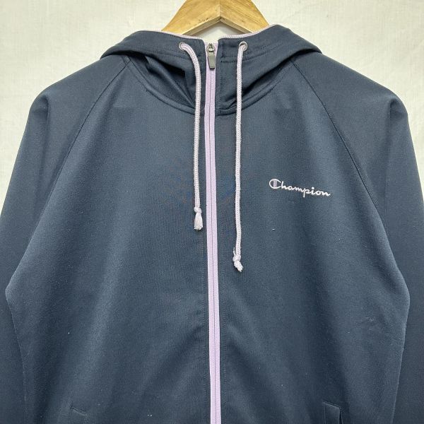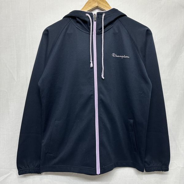 〇champion チャンピオン ロング スリーブ 長袖 フル ジップ アップ ジャケット スポーツ トレーニング ウェア L 紺 ネイビー