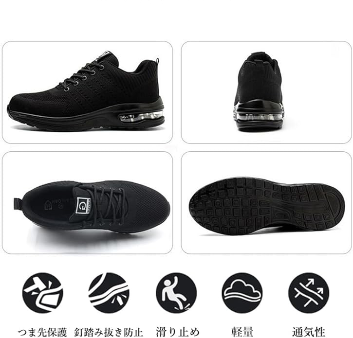 【通気性抜群】安全ブーツのアッパーは通気の編み物を採用する、通気性が抜群です。それに空気循環する特殊構造で、靴内の足ムレを軽減し快適です。履き心がいいです。