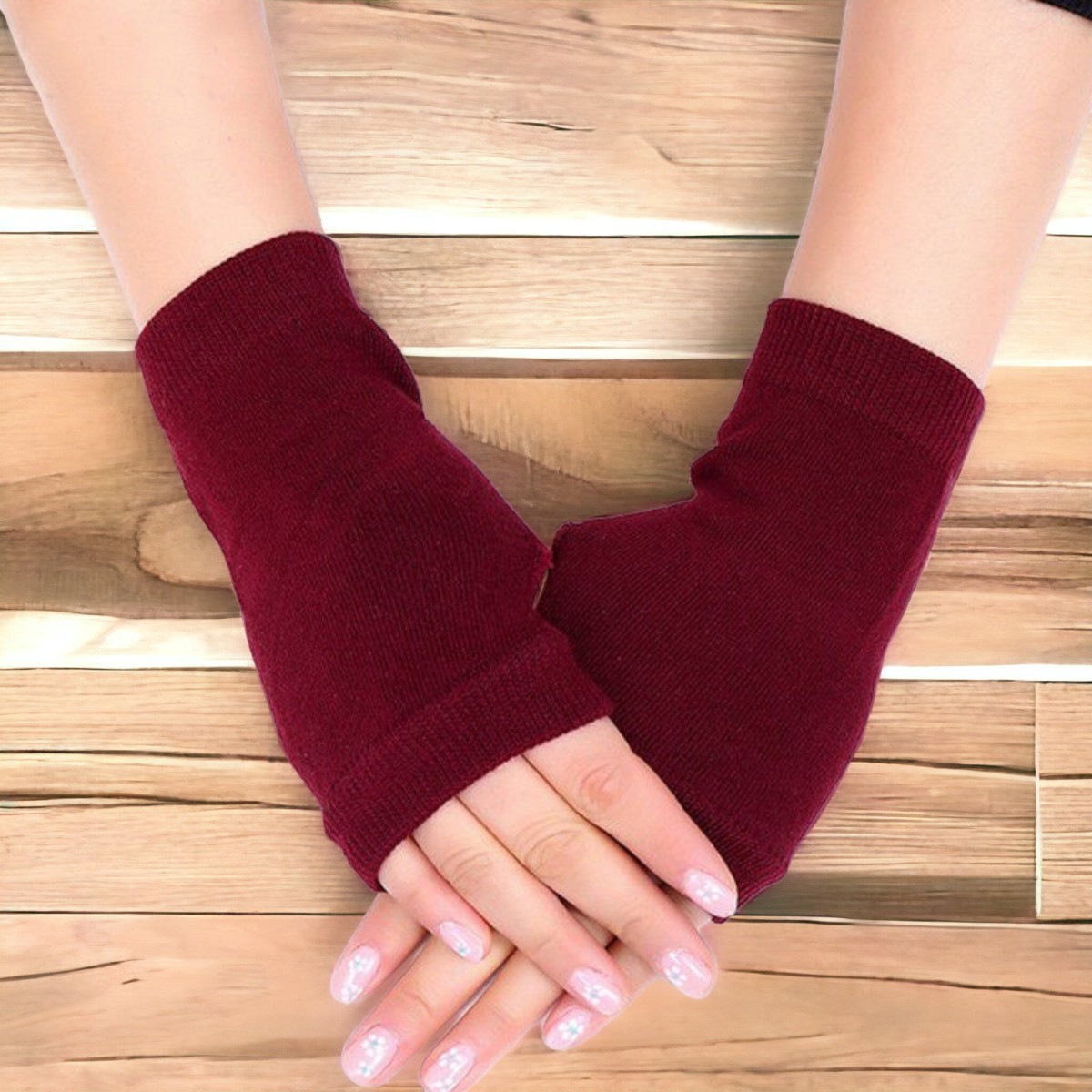 指なし 手袋 保温 アームウォーマー フィンガーレス 暖かい手袋 ワインレッド