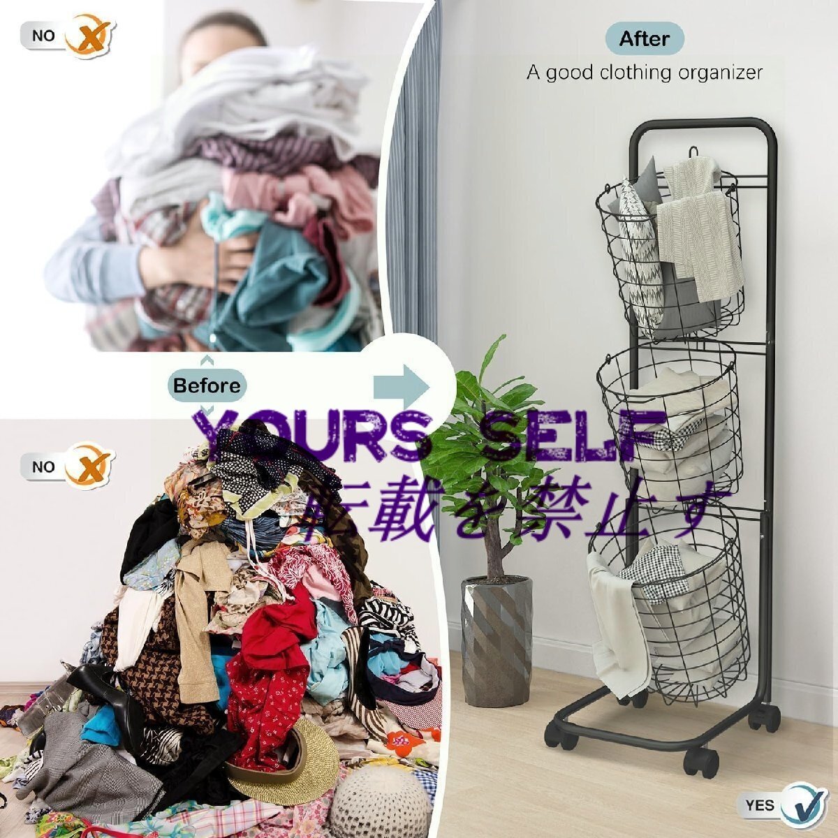 【3段デザイン】: 取り外し可能なワイヤーバスケット3個付きのランドリーバスケットは、親密なアパレル、靴下、濃い色の服と明るい色の服を別々に収納できます。 取り外し可能なキャリーバスケットで、毎日の使用がより便利になります。 より少ないスペースでより多くのアイテムを。