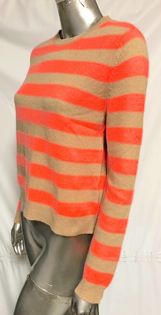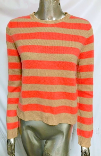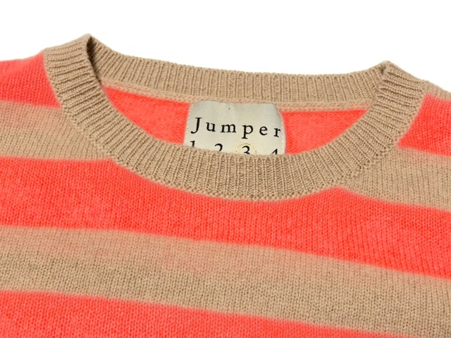 二点落札で送料無料! 2A6【極美品】JUMPER 1234 ボーダー カシミヤ ニット 長袖 トップス セーター オレンジ×ベージュ 3 M-L レディース