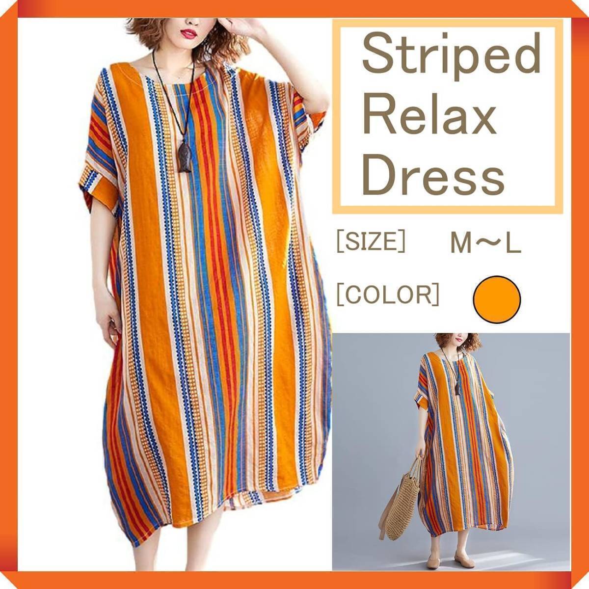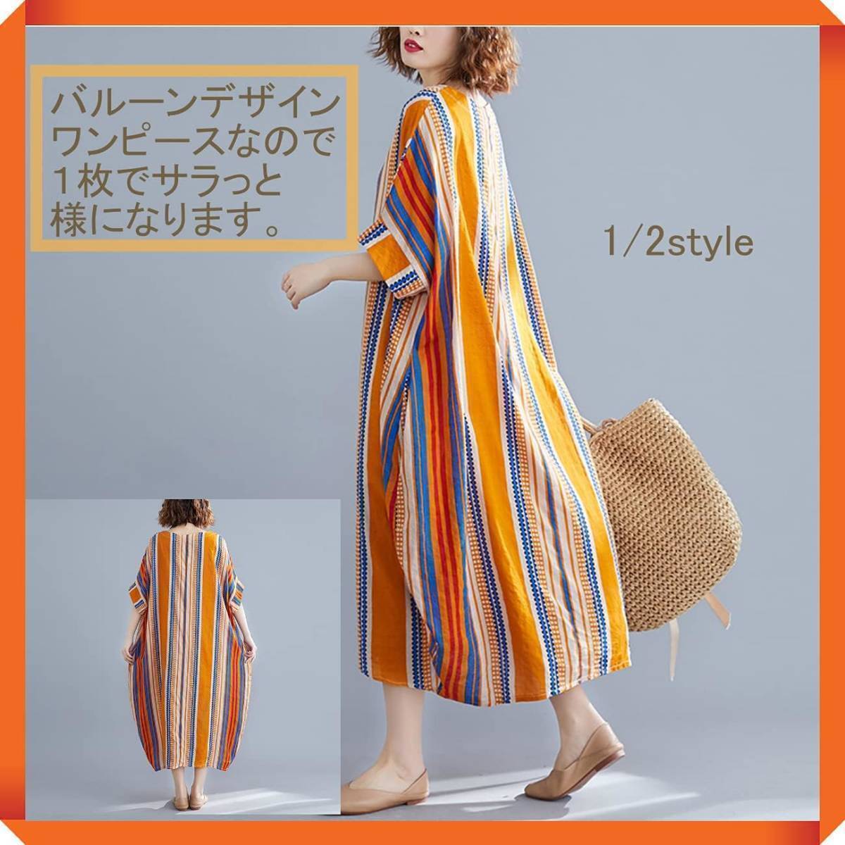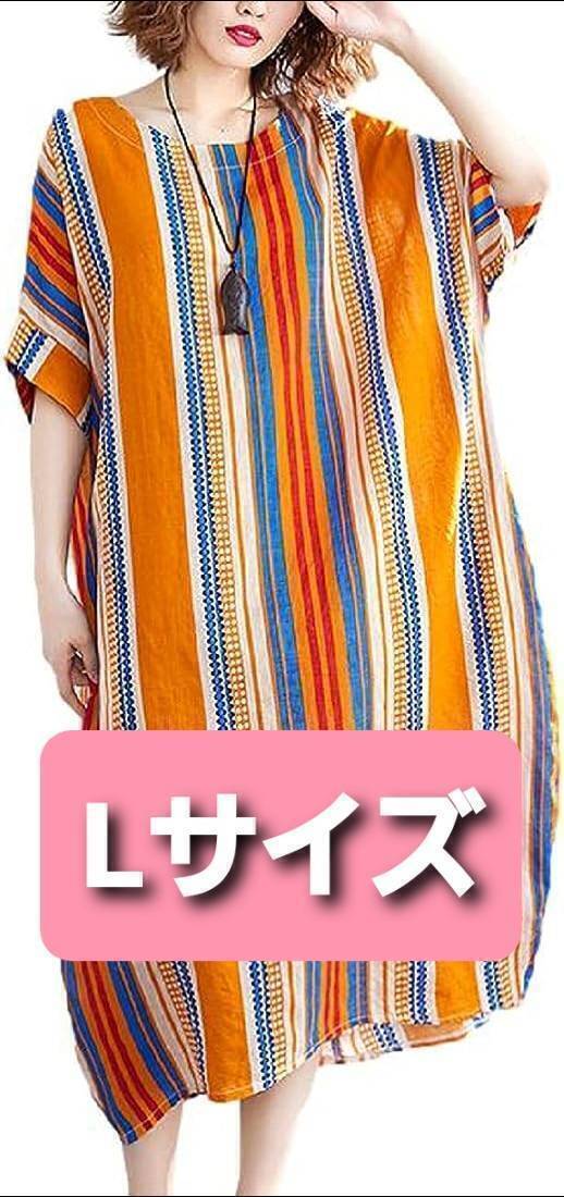 送料無料 1/2style ニブンノイチスタイル ワンピース レディース オレンジ L ストライプ きれいめ レトロ ロング シフォン 新品 未使用