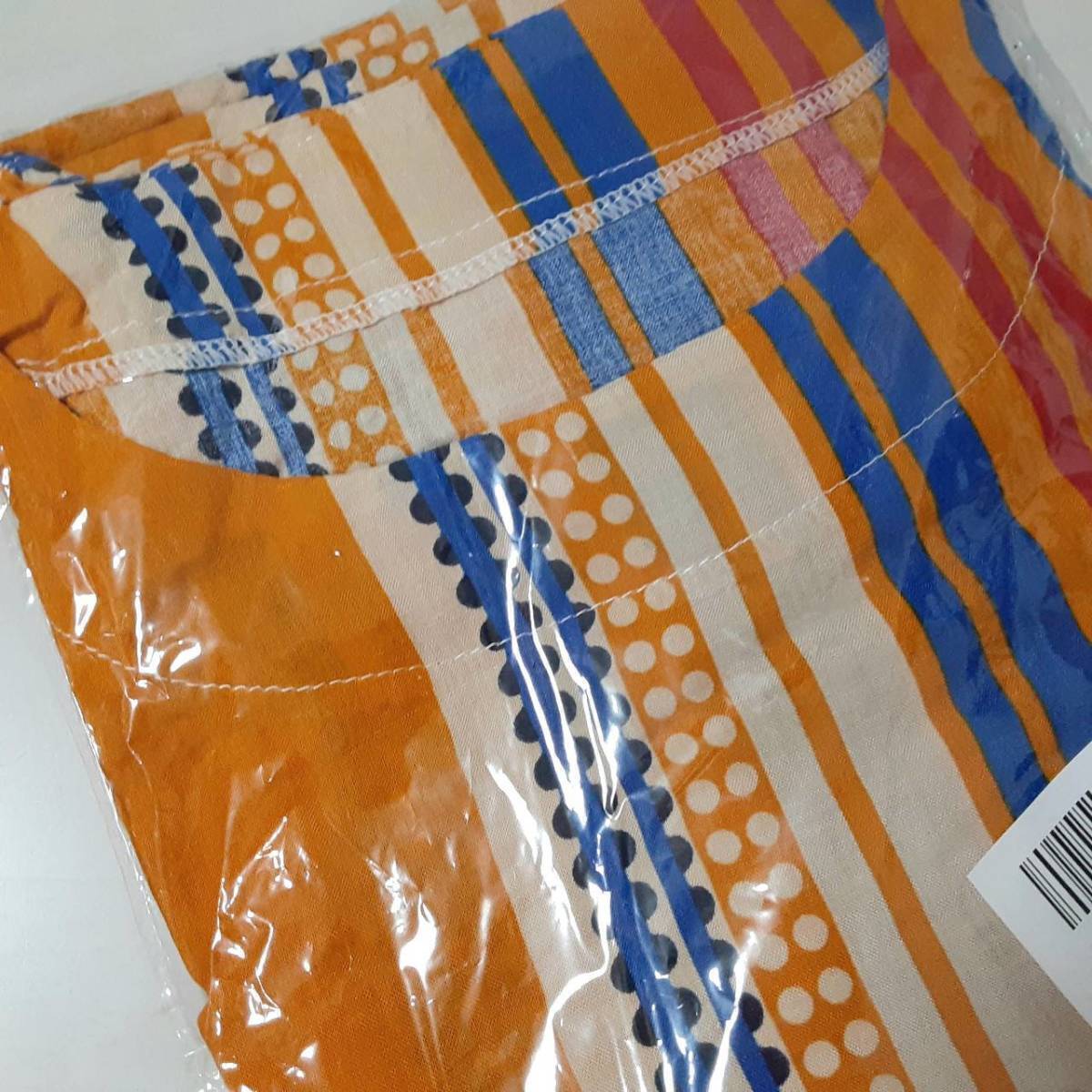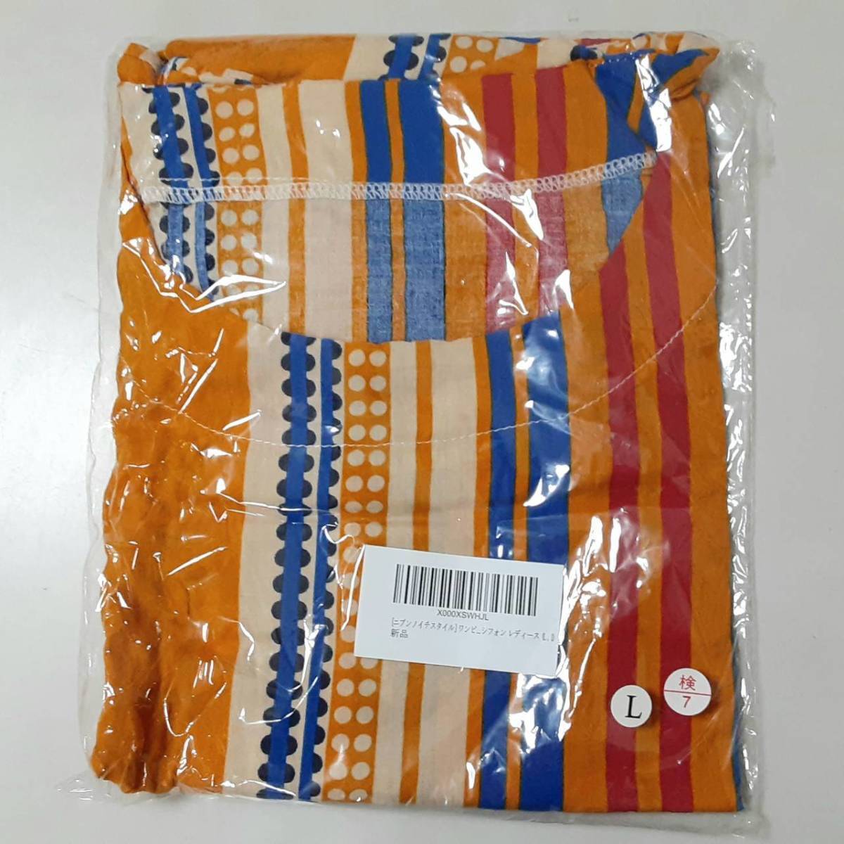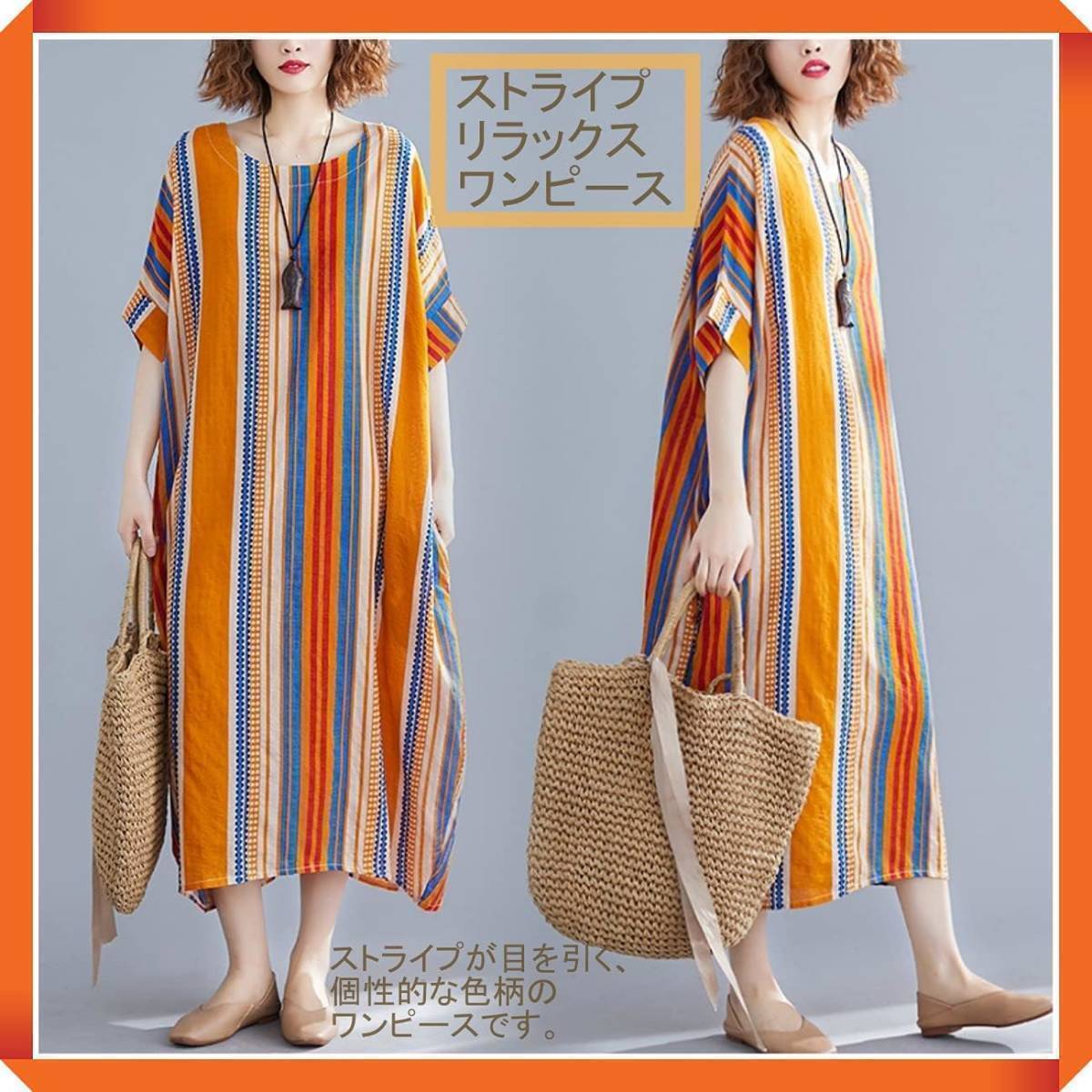 送料無料 1/2style ニブンノイチスタイル ワンピース レディース オレンジ L ストライプ きれいめ レトロ ロング シフォン 新品 未使用