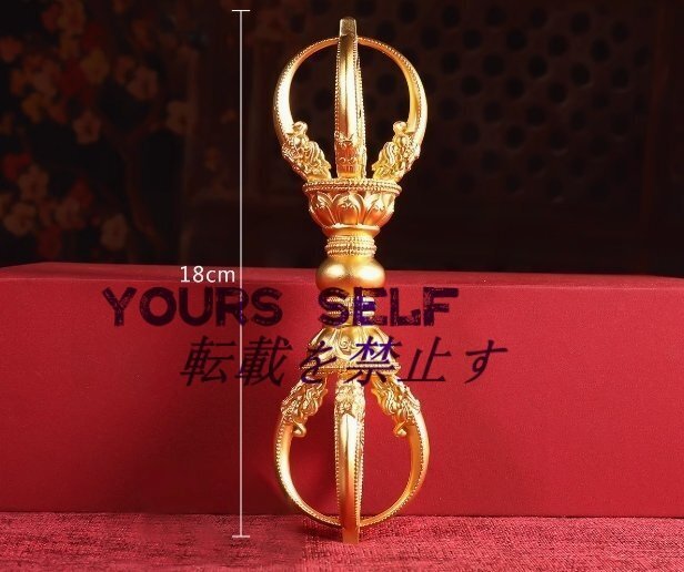 「密教法具 寺院用仏具」金剛五鈷杵 銅製磨き仕上げ 長さ18cm