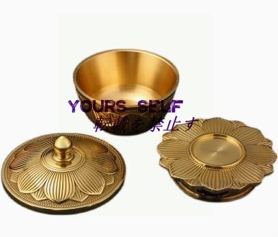 別上筋彫前具 洒水器、塗香器セット 真鍮製磨き仕上げ 密教法具 寺院用仏具