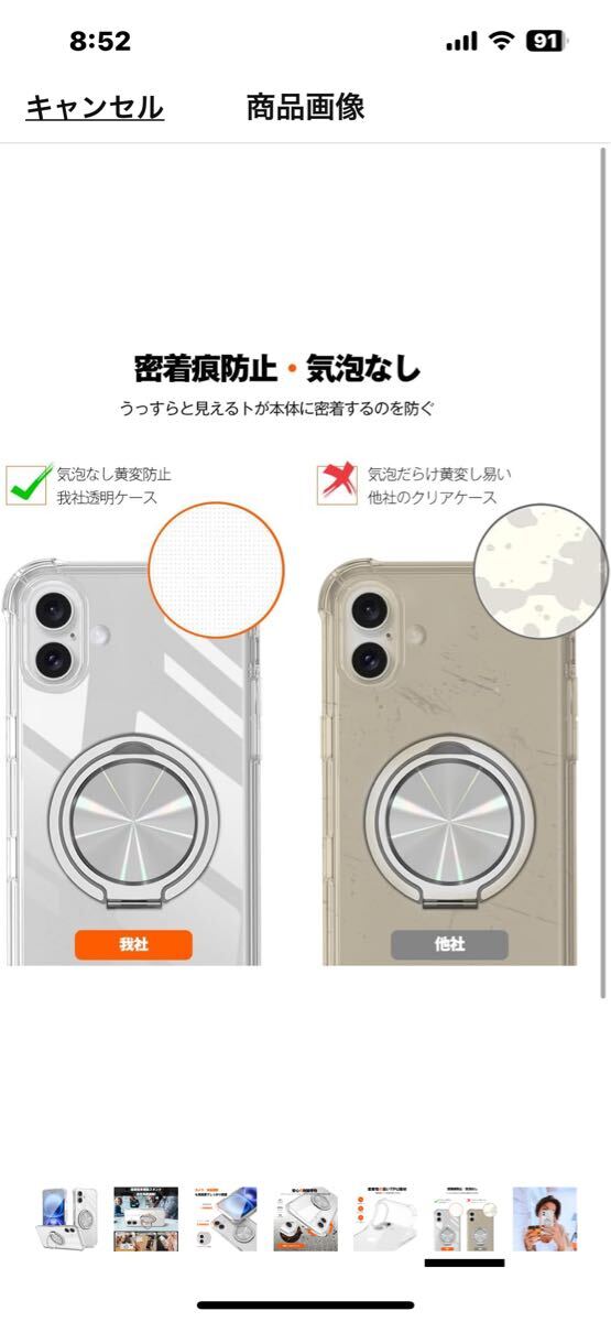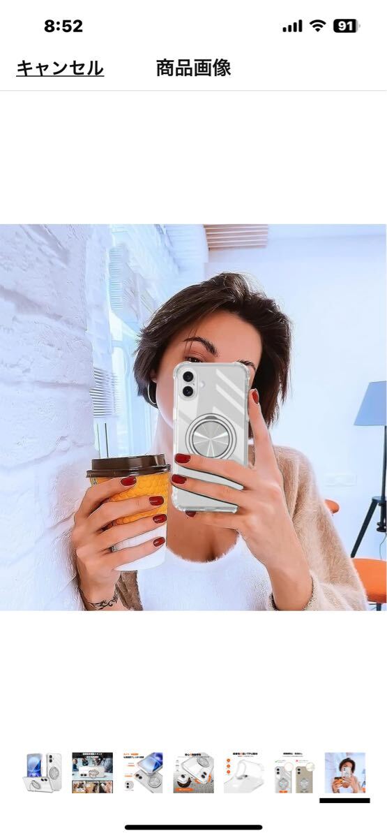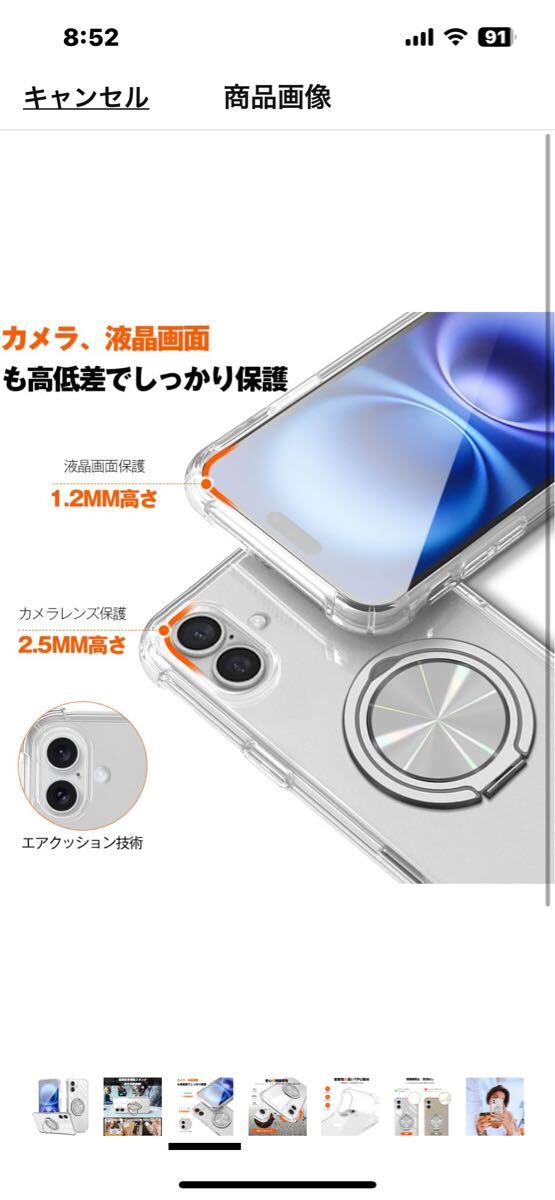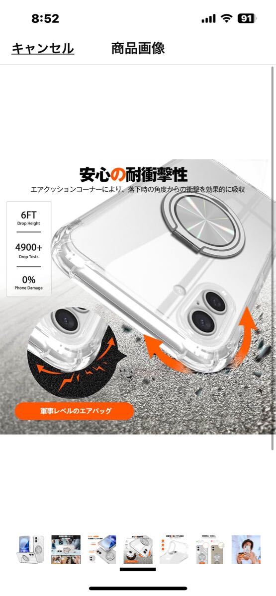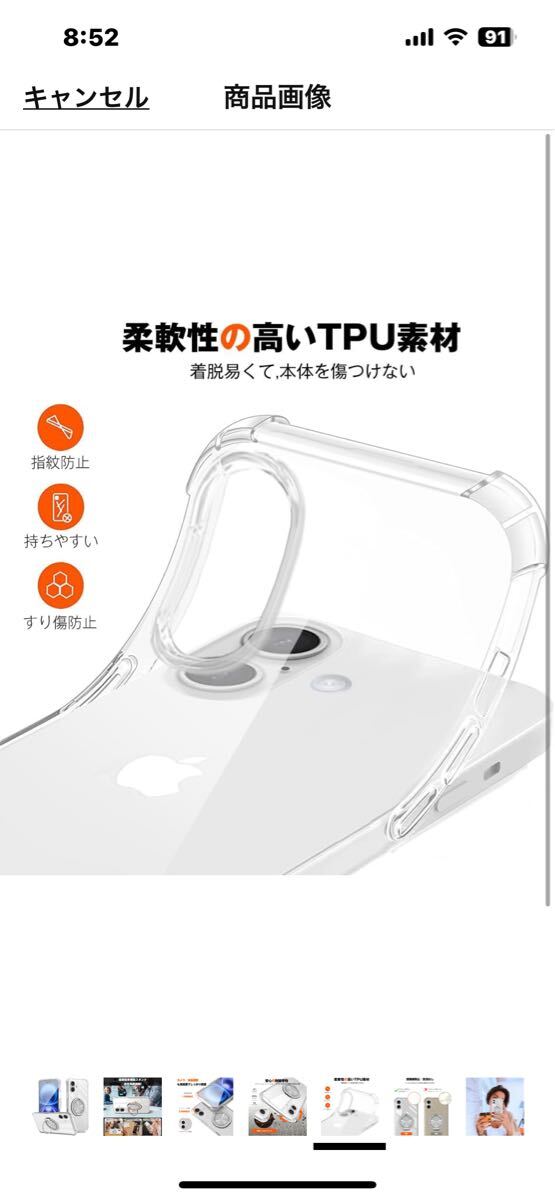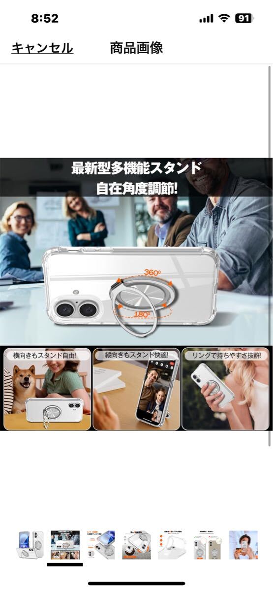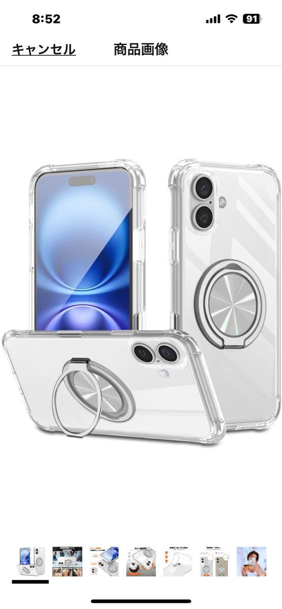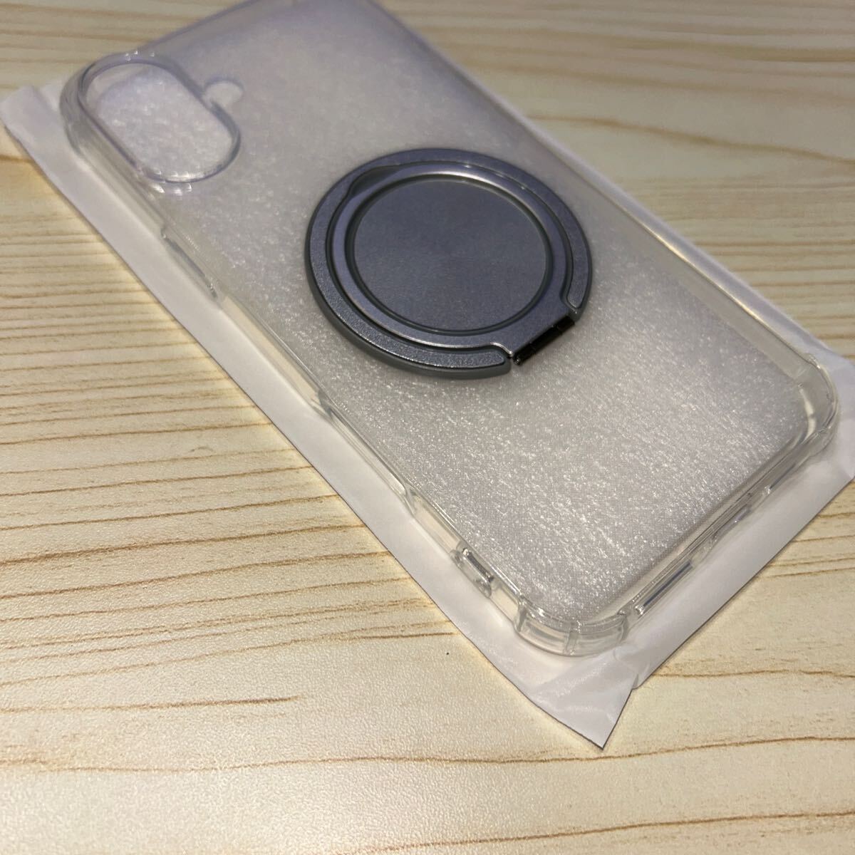 h185 iPhone 16 Plus 用 ケース 360°回転スタンド リング付き カバー スタンド機能 縦横両対応 TPU 保護ケース ストラップホール付き 透明