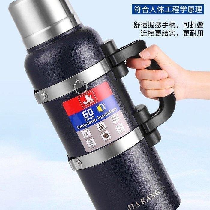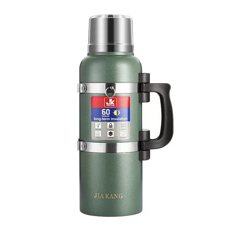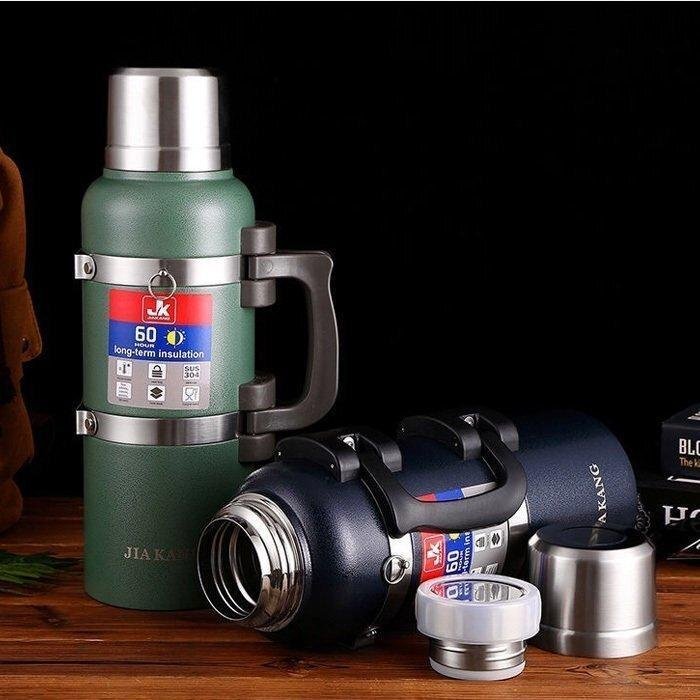 【3Lグリーン】水筒 魔法瓶 超大容量 二重断熱構造 ハンドル付き 保温 保冷 直飲み ステンレスボトル 持ち運び 旅行/登山/釣りボトル