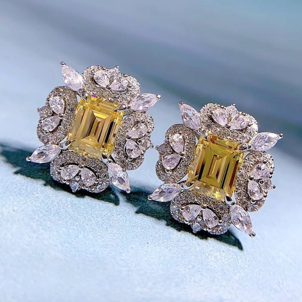 女性用ヴィンテージクォーツピアス,本物のシルバー100%,7*9mm,豪華なスタッド,カーボンダイヤモンド,ウェディングパーティー用