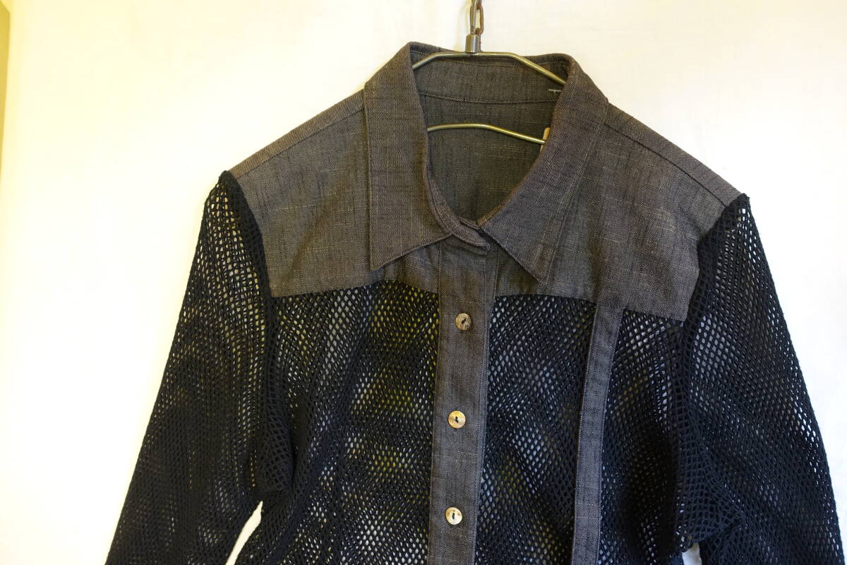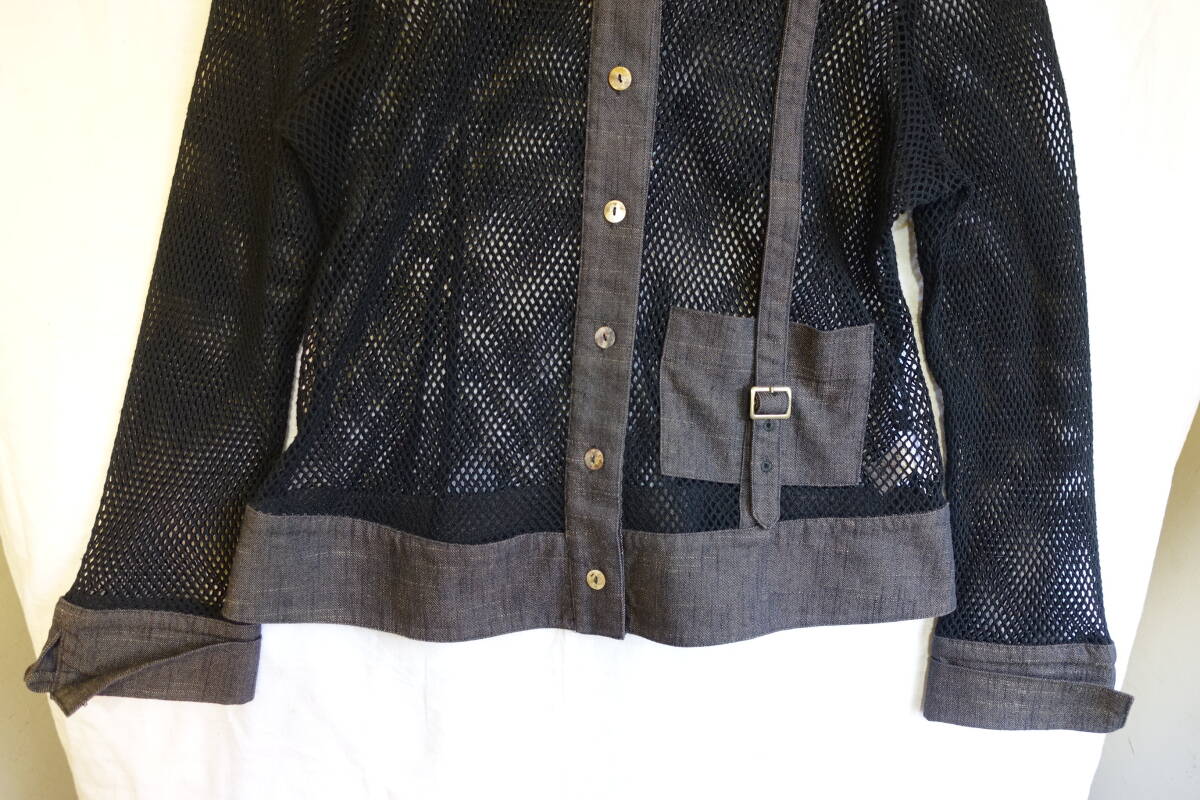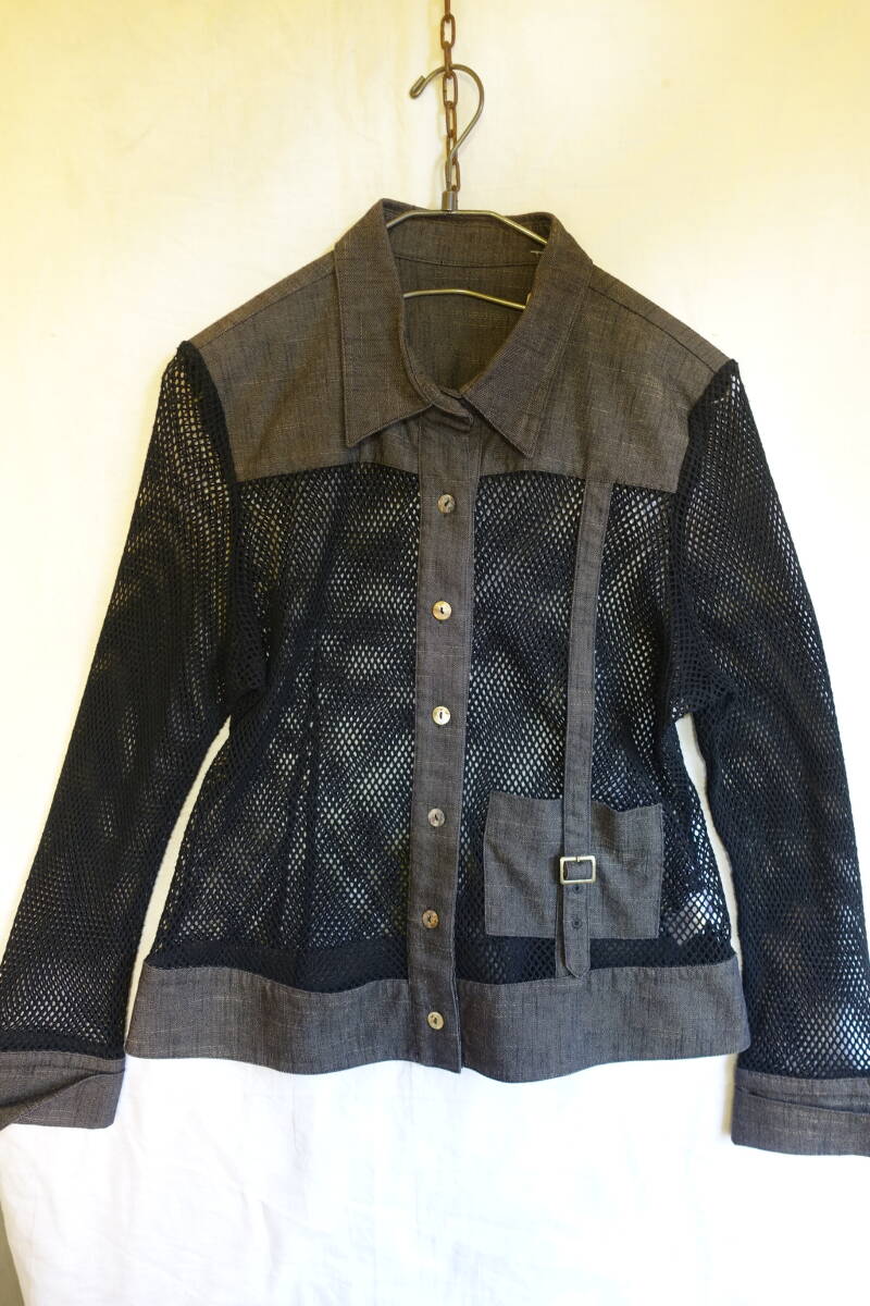 ○[80s90s00s vintage ヴィンテージ メッシュ デニム 切替 透け感 ジャケット]USED古着 昭和レトロ・モダン・モッズ