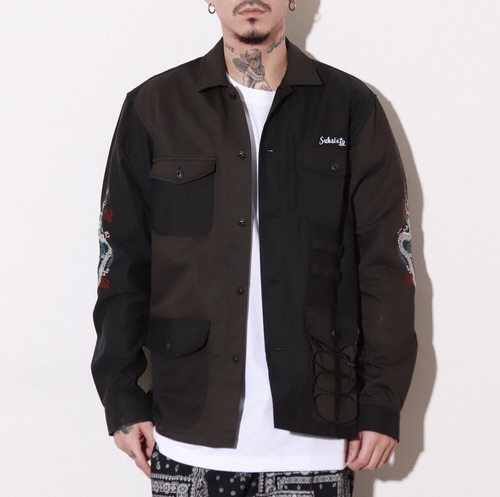 【Subciety】サブサエティ MARCH SHIRT 刺繍デザイン ミリタリーシャツジャケット クレイジーパターン ストリート
