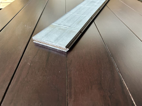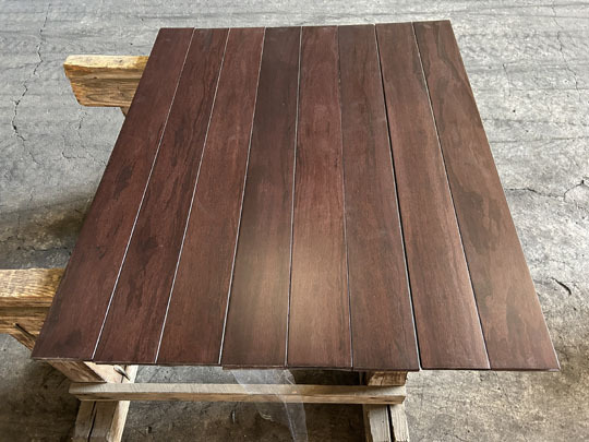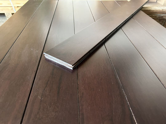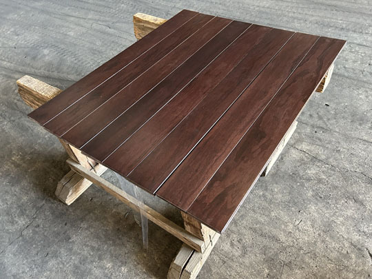 ■仕様 ココ椰子(複合)・UV塗装(ウォルナット色)・エンドマッチ加工(四方サネ済)・直貼り用