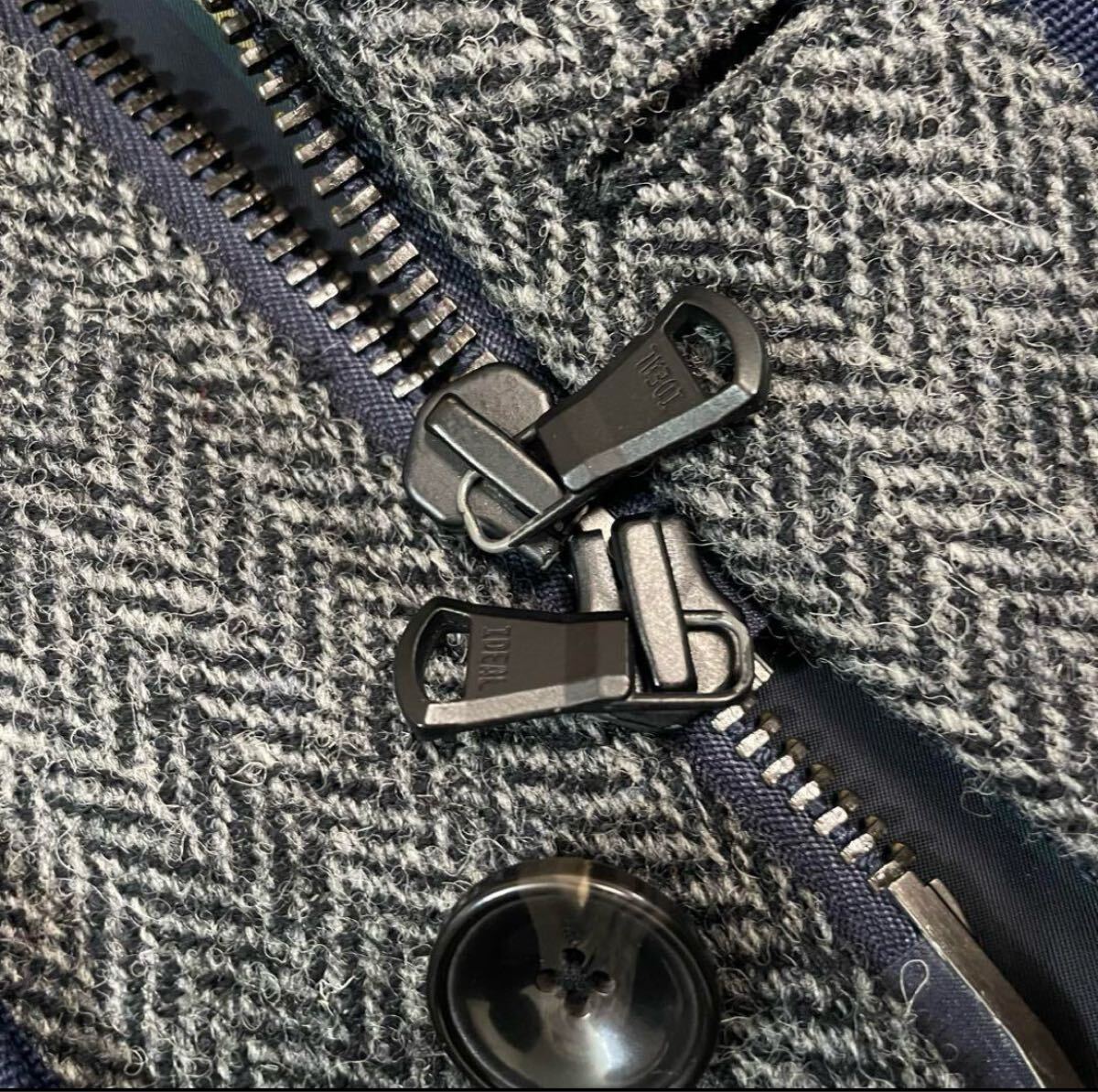 フロントはファスナーの他にボタンもついています。ダブルジップ Wジップ