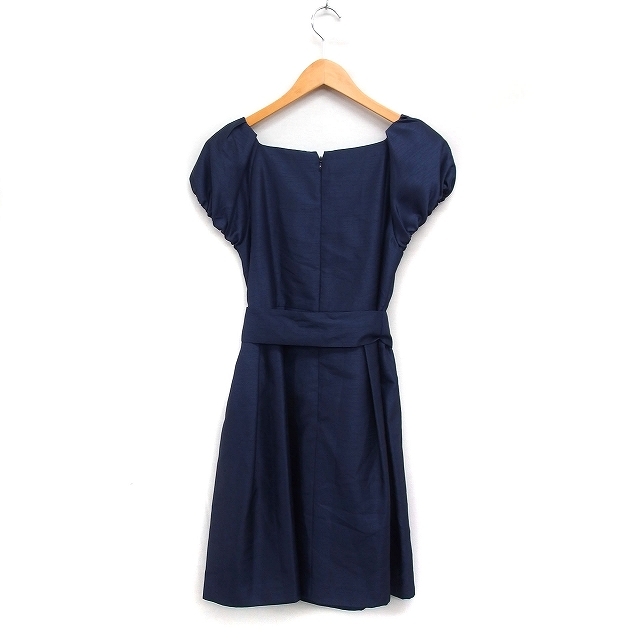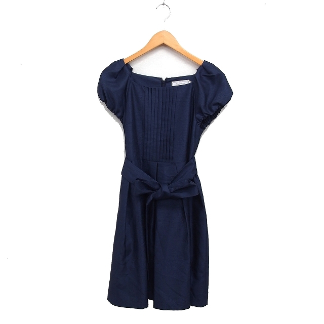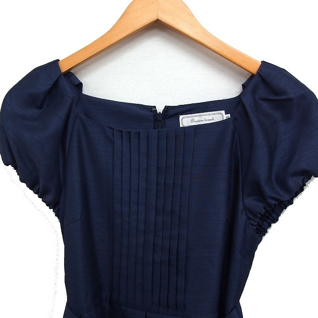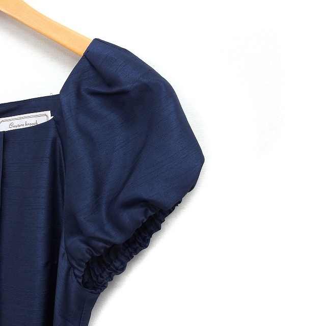 クチュールブローチ COUTURE BROOCH フォーマルワンピース パフスリーブ ひざ丈 リボン 光沢 38 ネイビー 紺 /FT7 レディース
