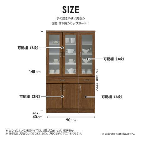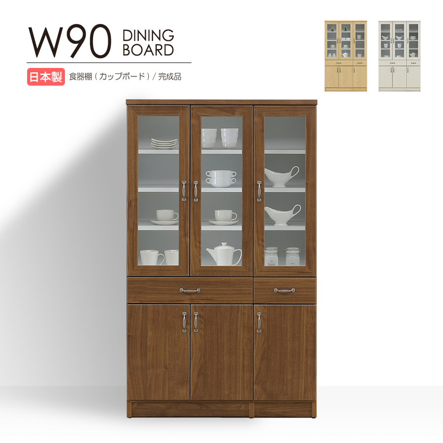 食器棚 キッチンボード 幅90cm 90cm幅 カップボード キッチン 収納 完成品 キッチン棚 棚 ブラウン