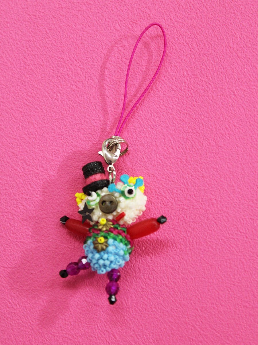 未使用品 アルベロベロ マジシャンブタさんビーズモチーフストラップ マルチ rk648