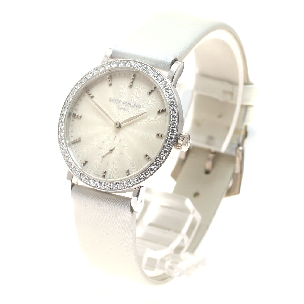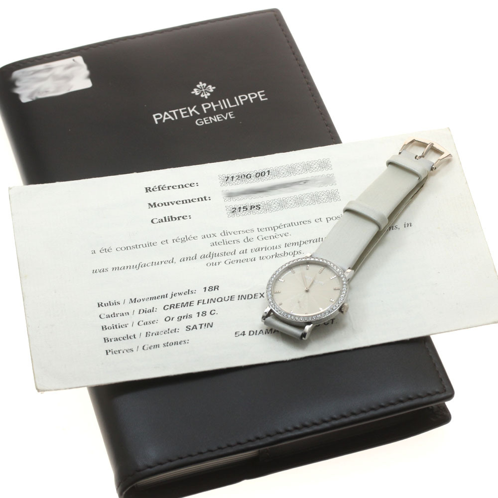 パテックフィリップ PATEK PHILIPPE 7120G カラトラバ スモールセコンド ダイヤベゼル K18WG 手巻き レディース 良品 保証書付き_849454