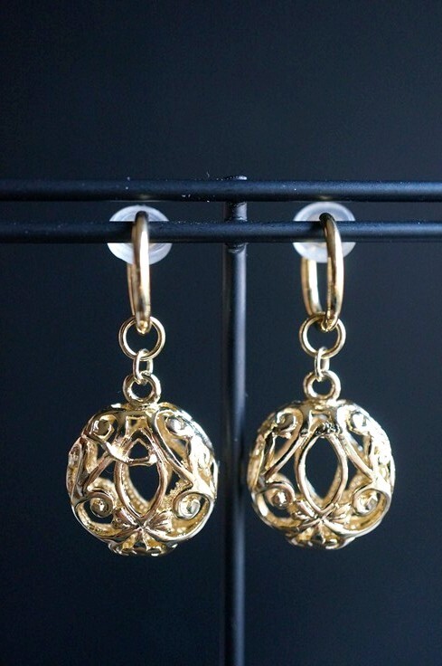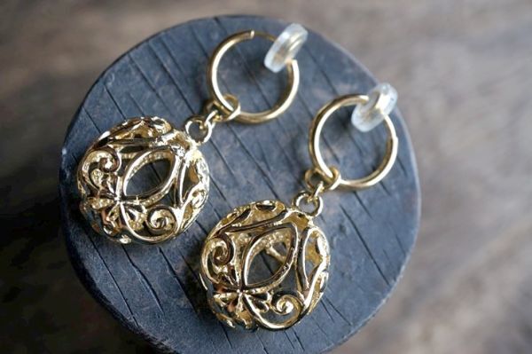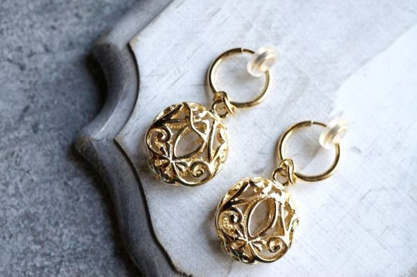 イヤリング 277 透かしメタル ゴールドカラーのフープイヤリング サージカルステンレス 金属アレルギー対応金具使用