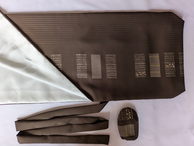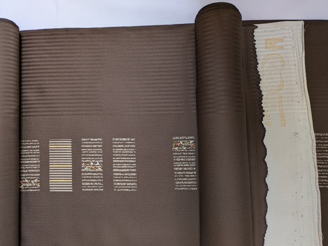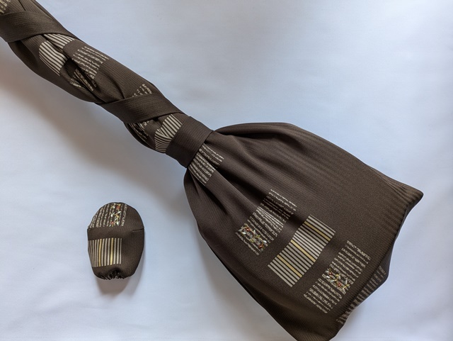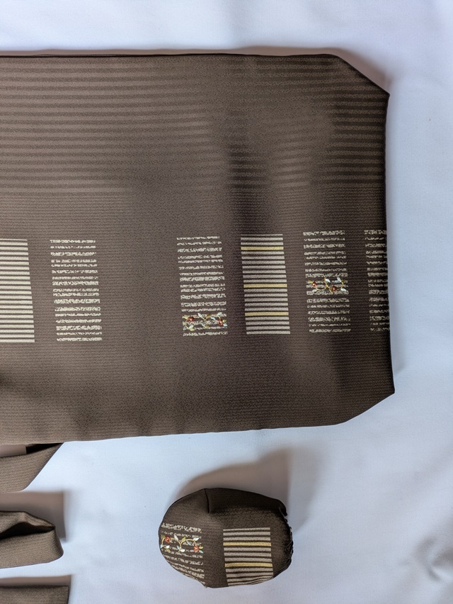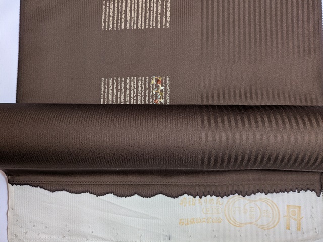 | 表布:正絹 こげ茶色に刺繍の花模様の付け下げ地より(新古品) | ||