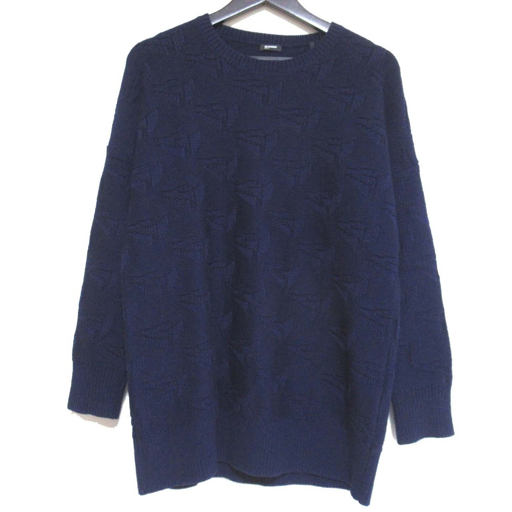 商品名:美品 JIL SANDER NAVY ジルサンダーネイビー ロングスリーブ 長袖 プルオーバー ジャガード ニット セーター Lサイズ ネイビー