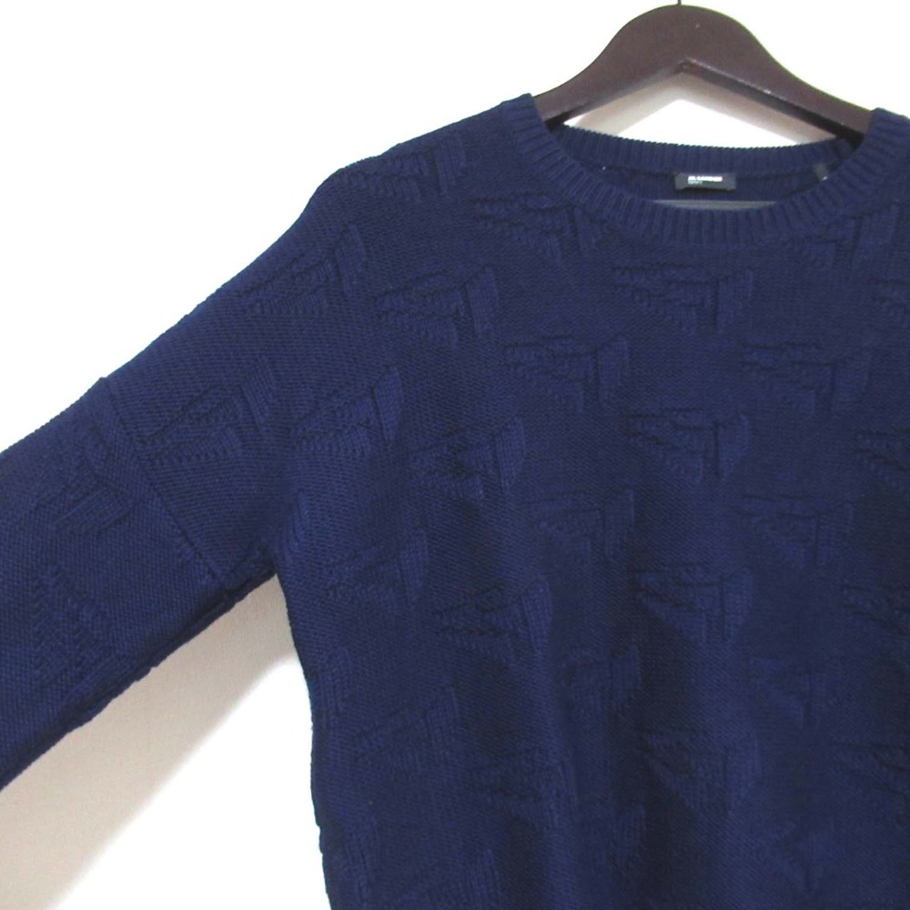 美品 JIL SANDER NAVY ジルサンダーネイビー ロングスリーブ 長袖 プルオーバー ジャガード ニット セーター Lサイズ ネイビー