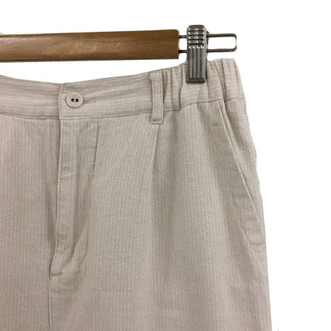サマンサモスモス SM2 パンツ ワイド ストレート ロング タック ストライプ リネン混 F 白 ベージュ ホワイト レディース