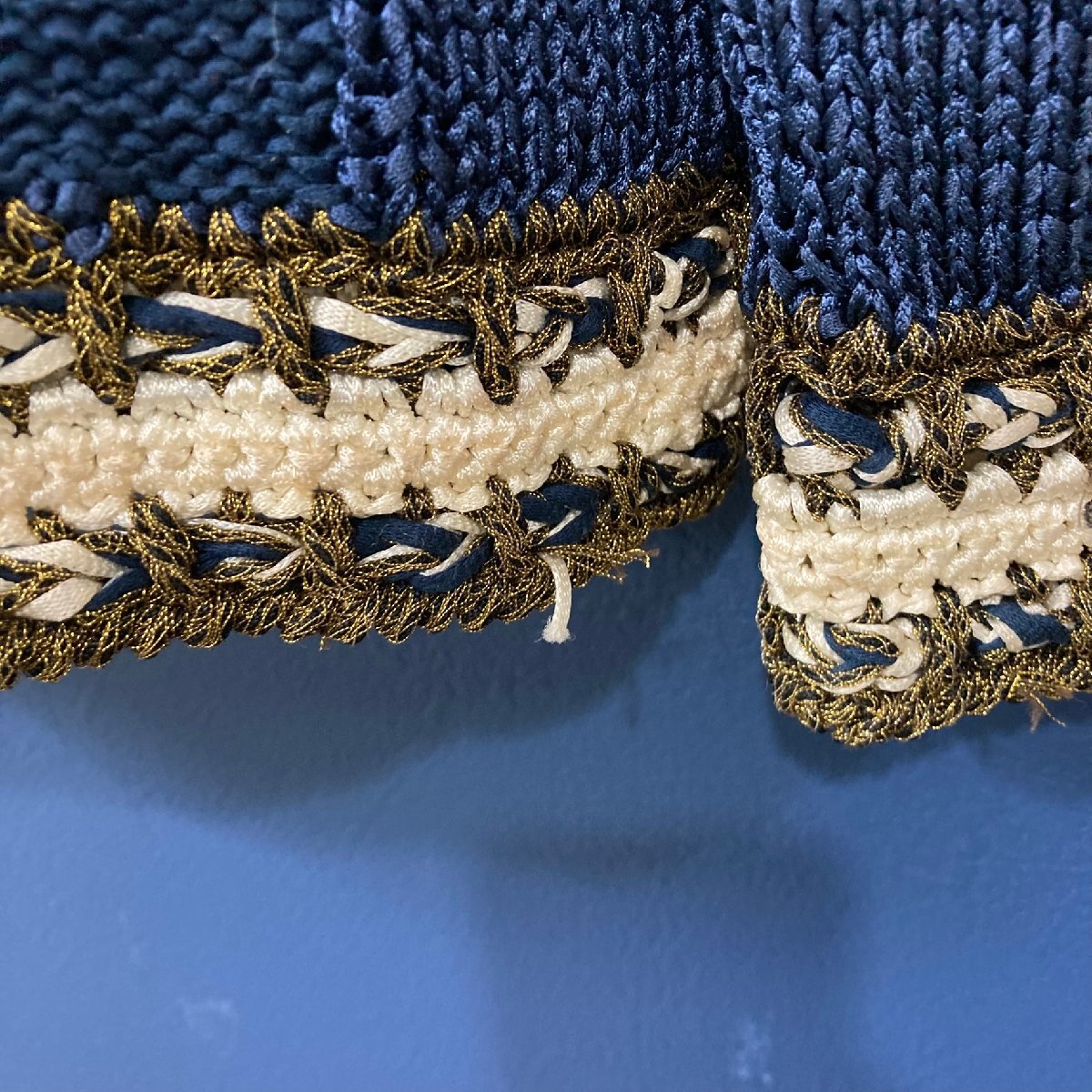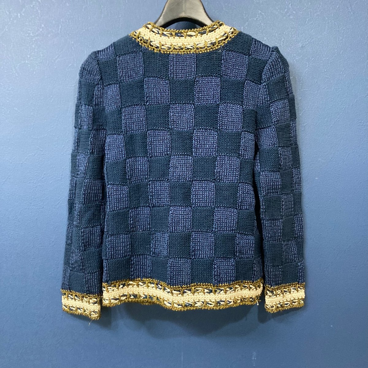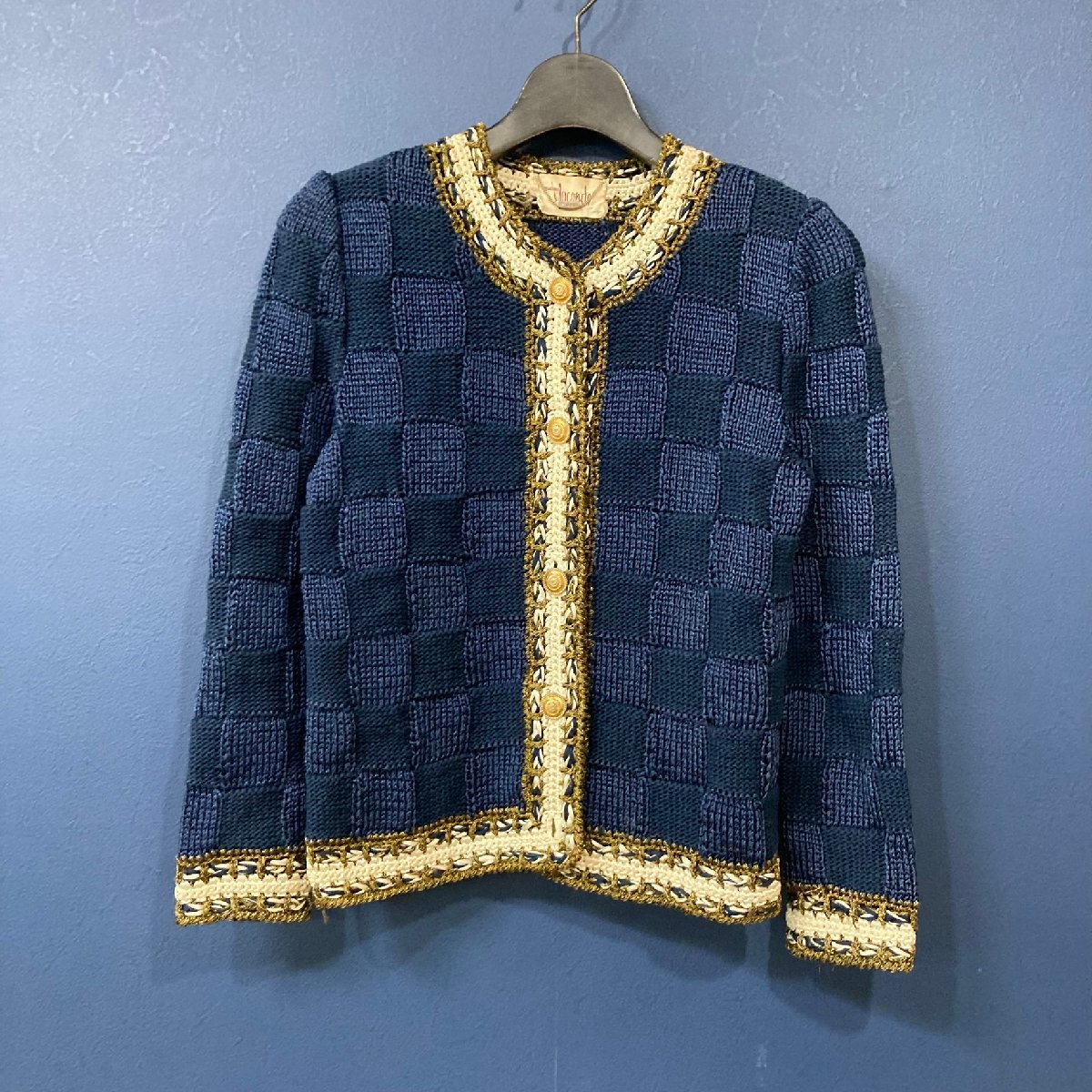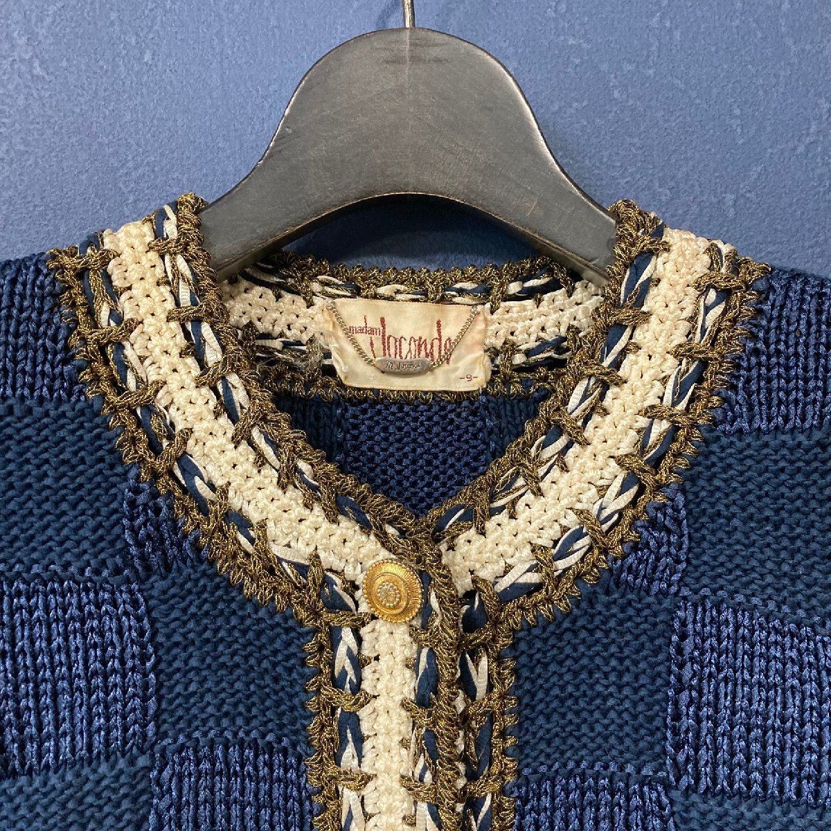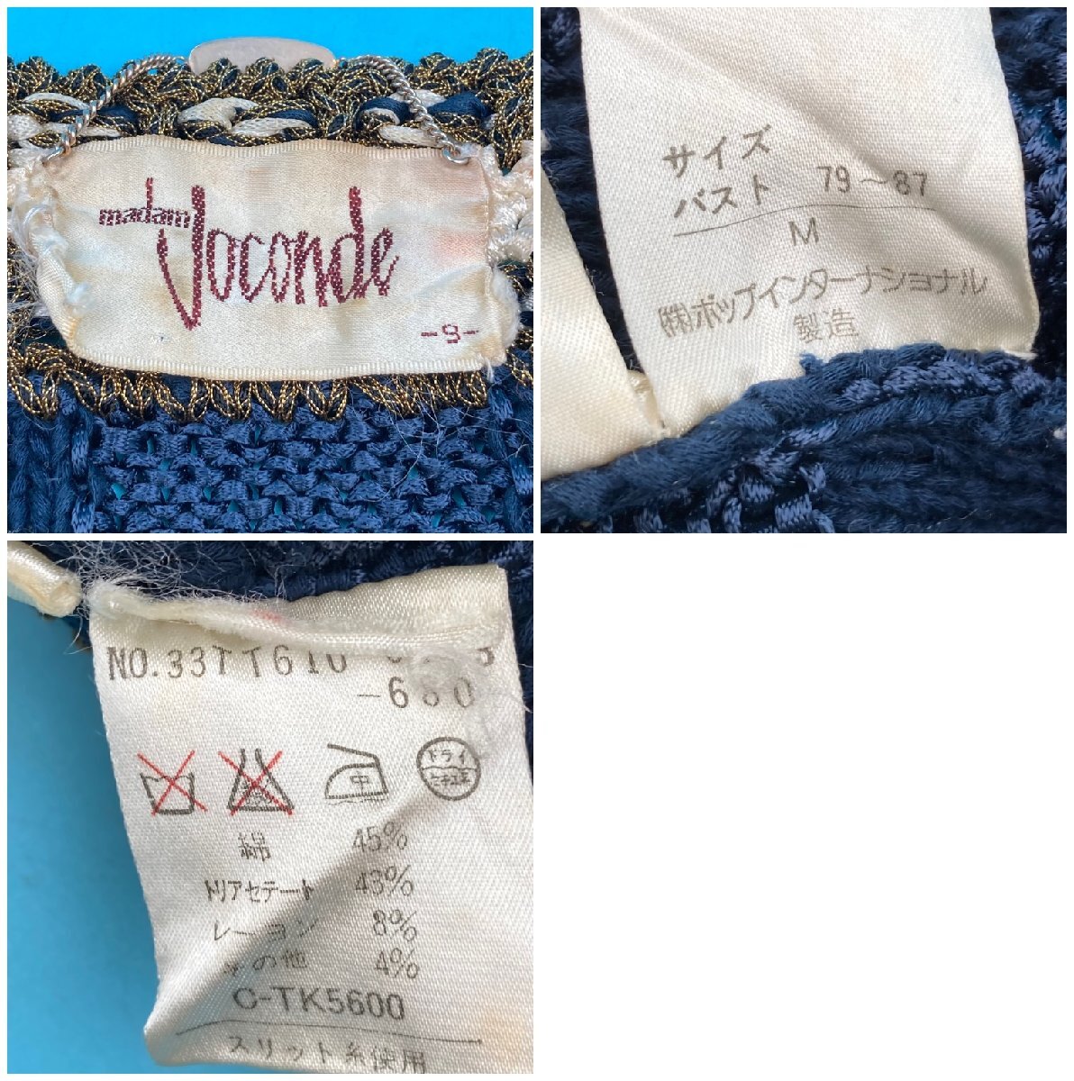 【15548P170】マダム ジョコンダ MADAM JOCONDE ニット カーディガン 羽織り ネイビー 紺色 9号 Mサイズ スリット糸使用 金ボタン レトロ
