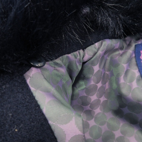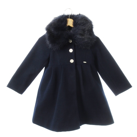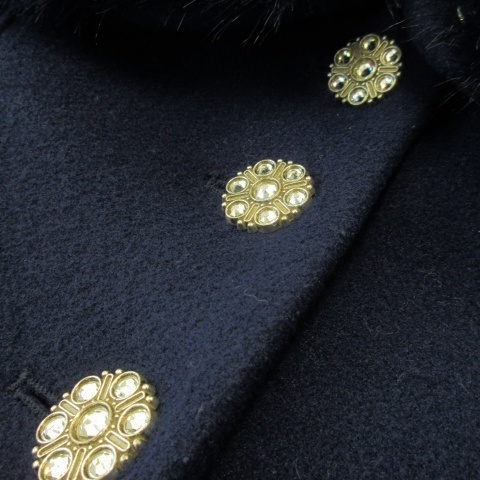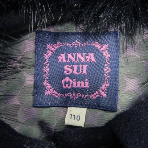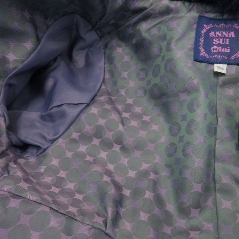 アナスイ ANNA SUI mini ステンカラーコート ファーカラー ラインストーンボタン ロゴプレート ガール 女の子 110 紺 ネイビー