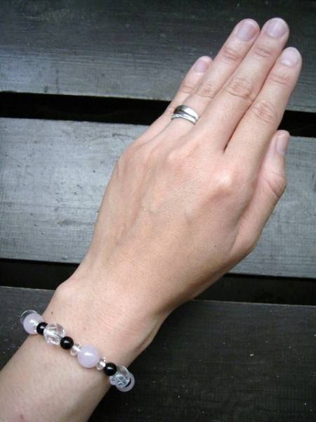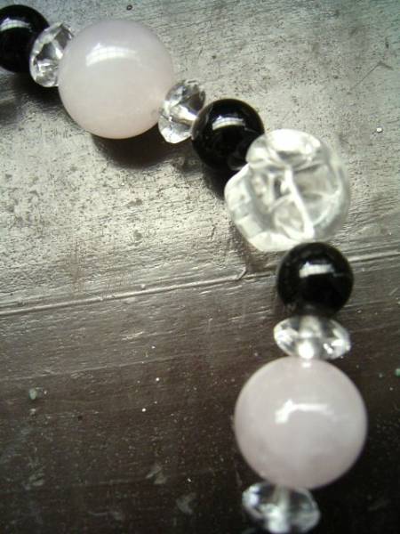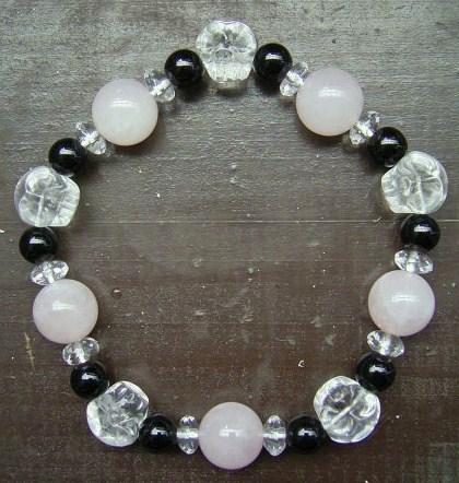 スカル水晶xローズクォーツxオニキスブレスレット 天然石 パワーストーン