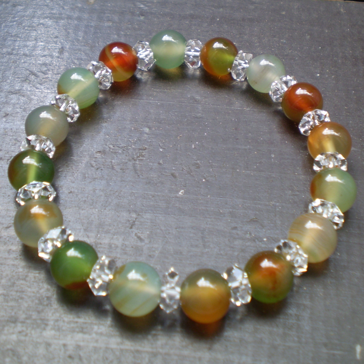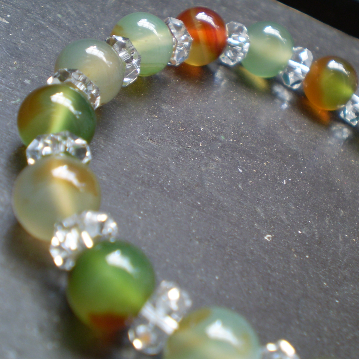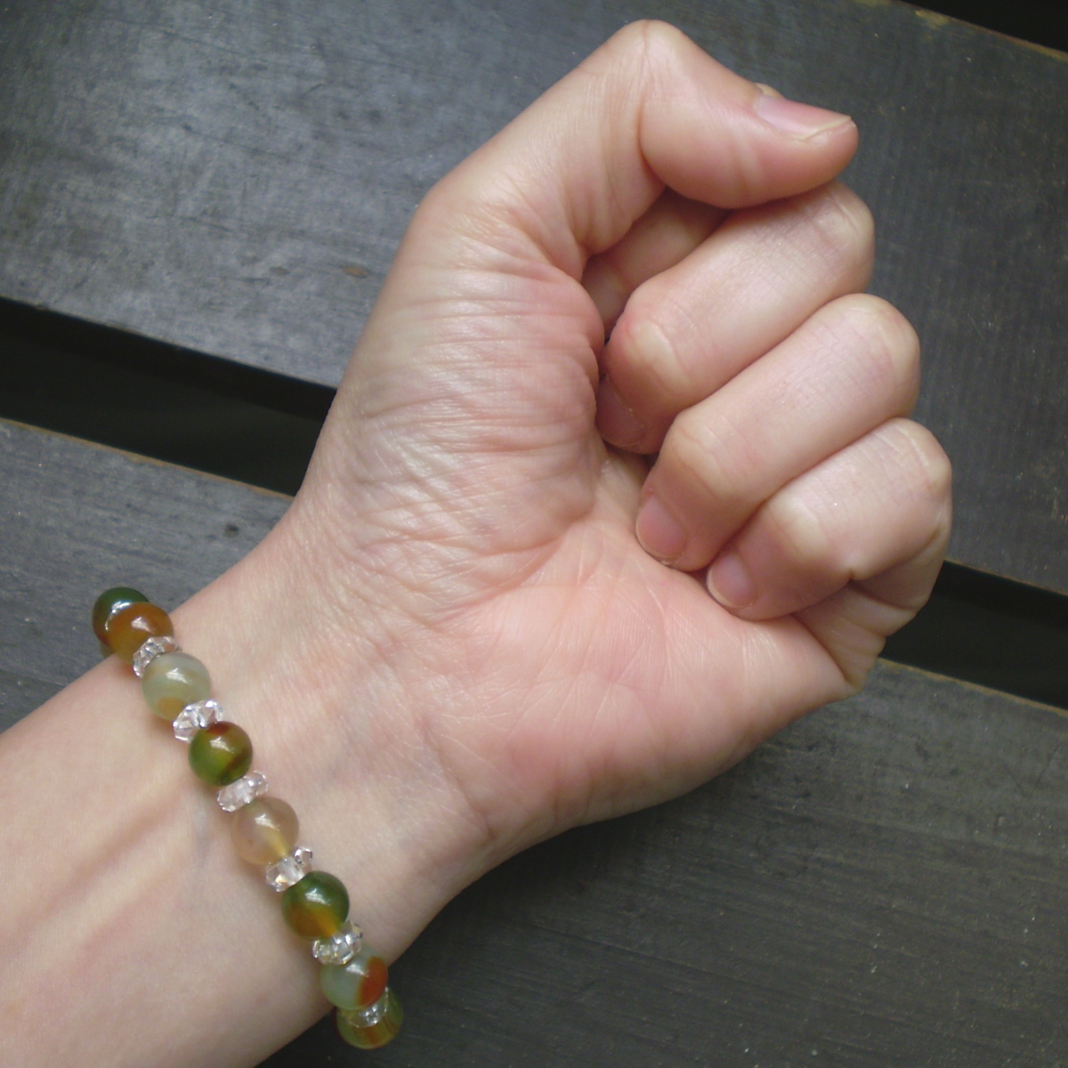 ピーコックアゲートxカット水晶ブレスレット 天然石 パワーストーン